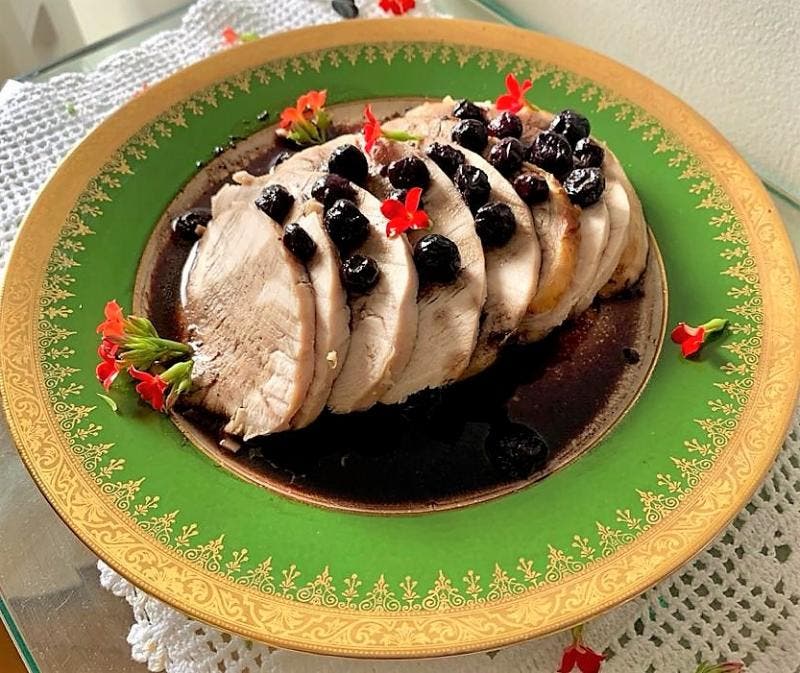 Peito de peru assado com molho de blueberries