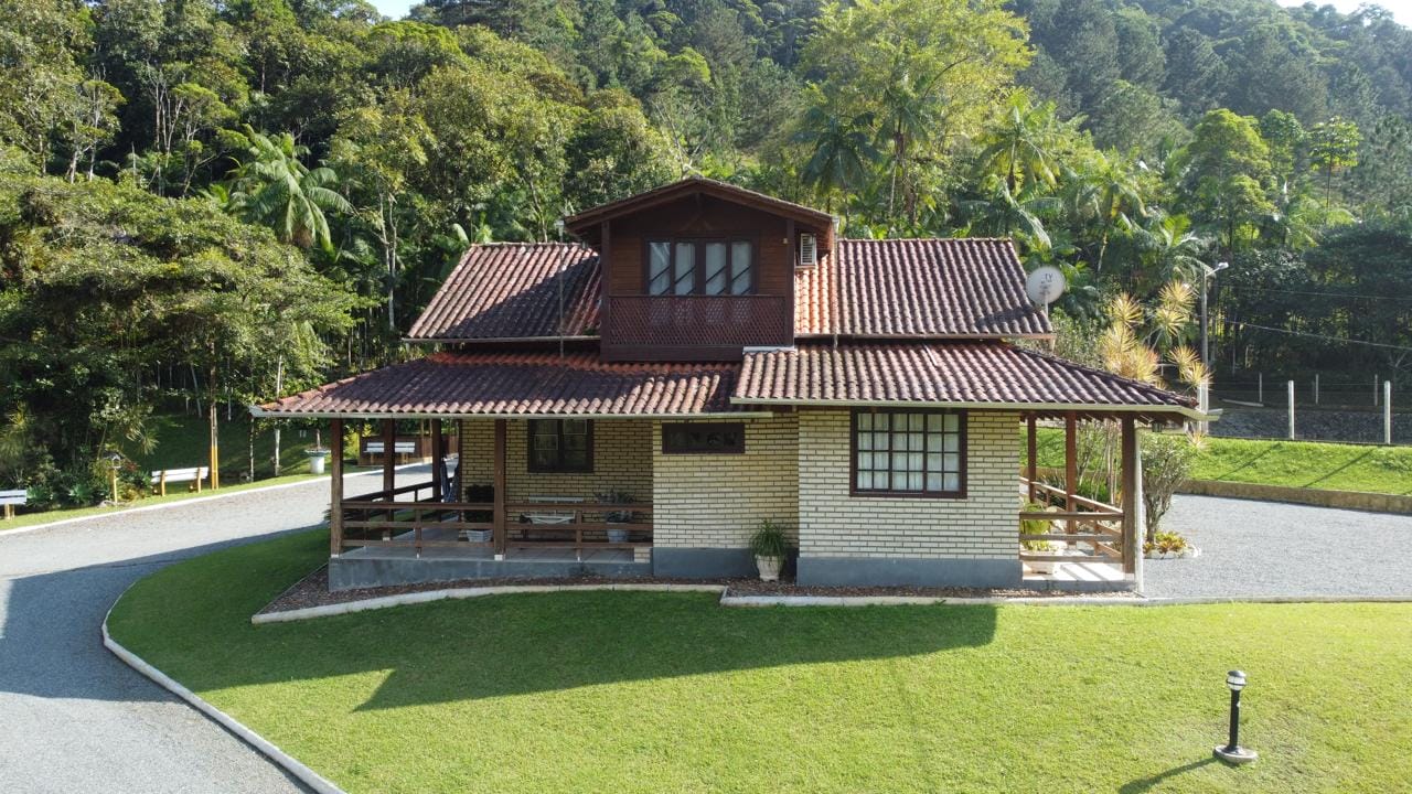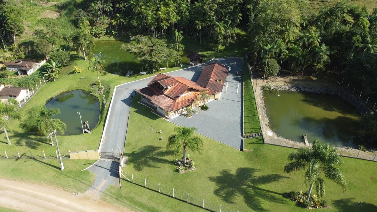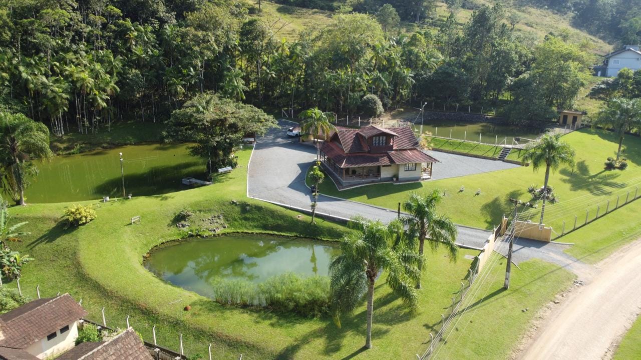 A propriedade fica no bairro Testo Alto, no interior da charmosa cidade de Pomerode, no Vale do Itajaí. Lá dentro estão três lagos de peixe, um atrativo para os adeptos da pescaria. A casa tem quase 300 metros quadrados, com direito a quatro quartos e duas varandas para apreciar a paisagem.