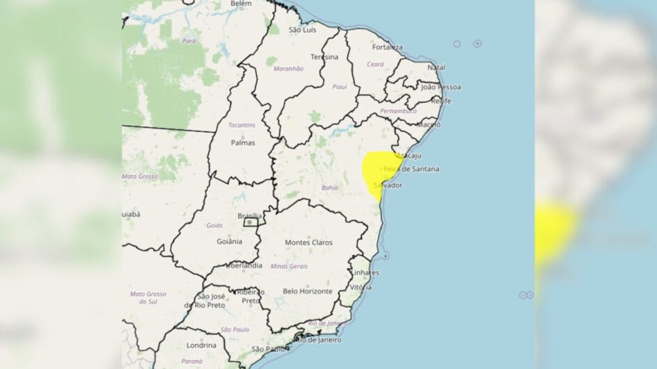 Parte da Bahia está sob alerta amarelo para acumulado de chuva até a sexta-feira (14), segundo um aviso do Instituto Nacional de Meteorologia (Inmet).