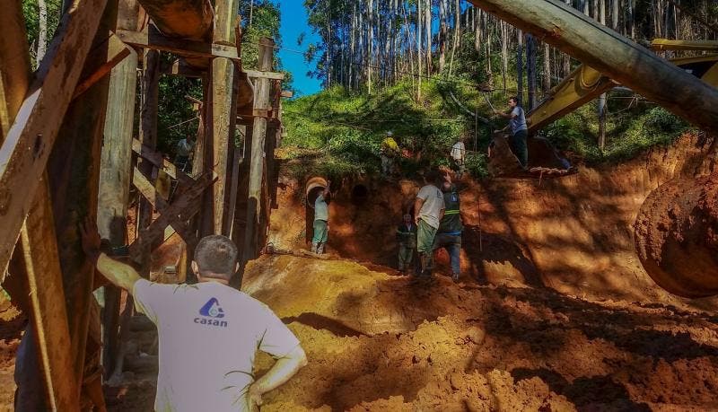 A Casan ainda esclareceu que, diferente do que foi compartilhado nas redes sociais durante a tarde desta segunda-feira, não houve um novo desmoronamento de terra no local. O que ocorreu é que, como solo na região da captação do Rio Pilões está encharcado e instável, o que dificultou a fixação dos pilares que sustentam a adutora, por medida de segurança, a Casan optou colocar estaqueamentos metálicos junto à estrutura de madeira.
