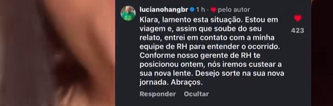 Luciano Hang ressaltou que deseja sucesso à nova fase de Maria Clara, indicando descartar a possibilidade de uma recontratação. Mesmo assim, a jovem ficou feliz e grata por recuperar as lentes.