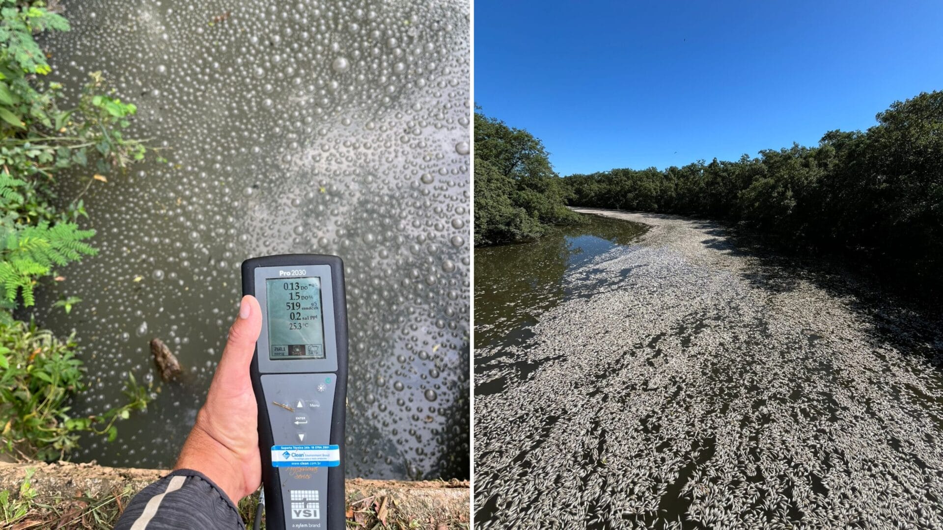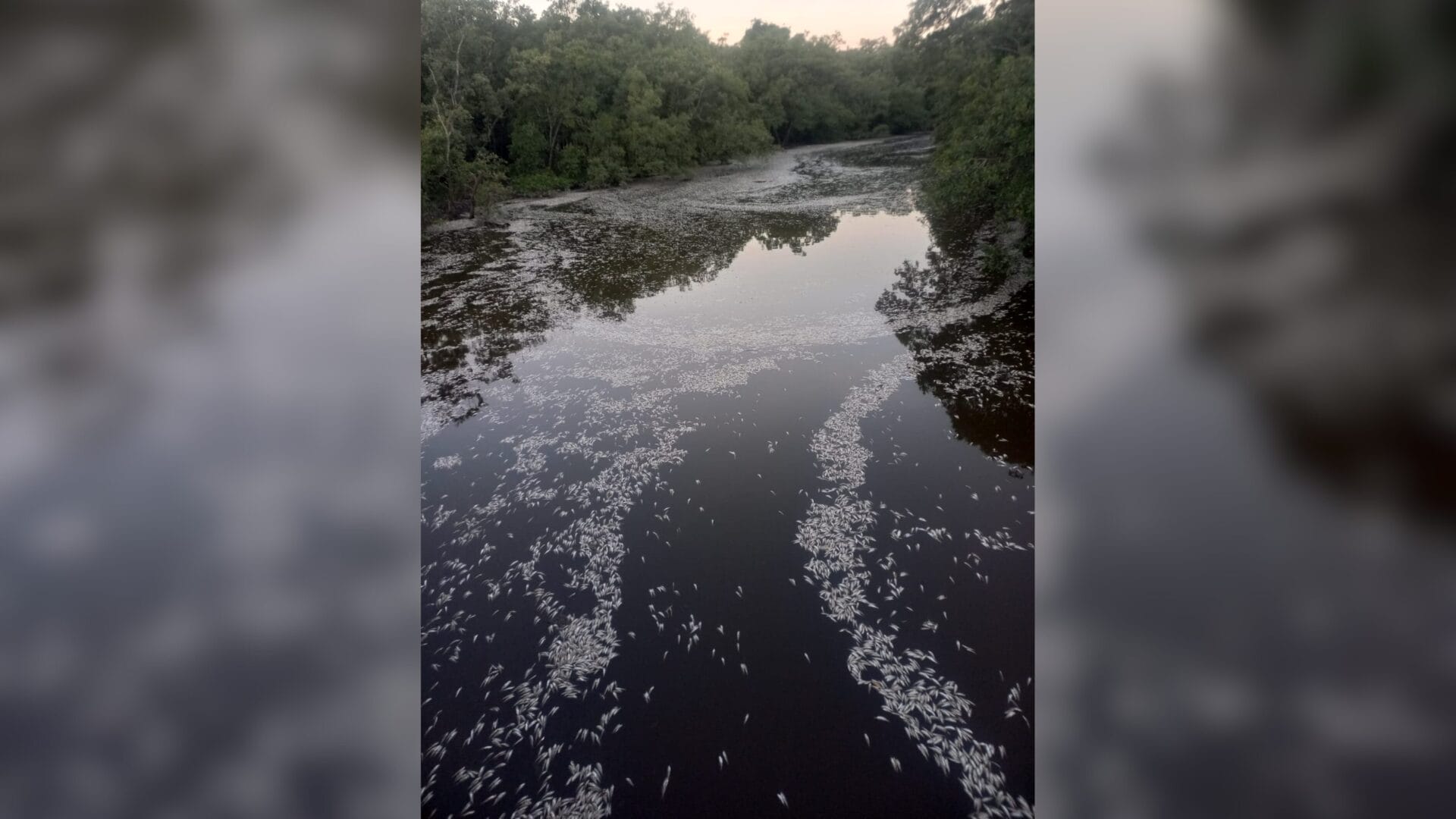 Durante as medições, foram registrados níveis críticos de oxigênio dissolvido, inferiores a 2 mg/L e chegando a valores próximos de zero em alguns pontos, condição considerada letal para a fauna aquática. Técnicos também observaram peixes boquejando na superfície, comportamento típico de sufocamento.