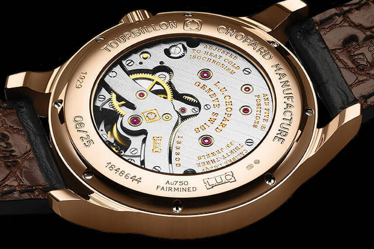 Mas esse Chopard vai muito além da reunião de matérias-primas consideradas nobres. O movimento turbilhão utilizado no relógio é o ápice do segmento.