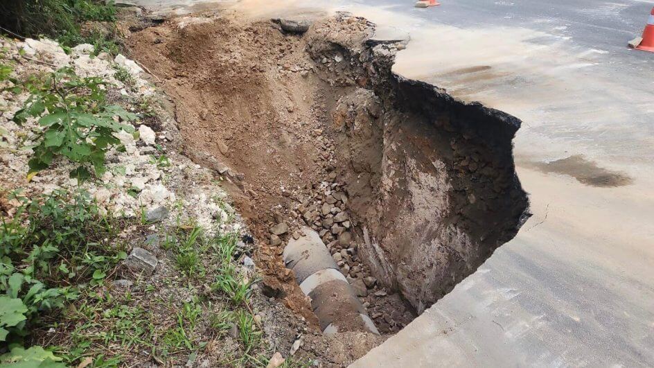 Equipes da Secretaria de Infraestrutura trabalham no local desde a segunda-feira (22) e o problema foi causado por uma erosão em tubos de drenagem, que ficaram danificados e estão sendo substituídos.