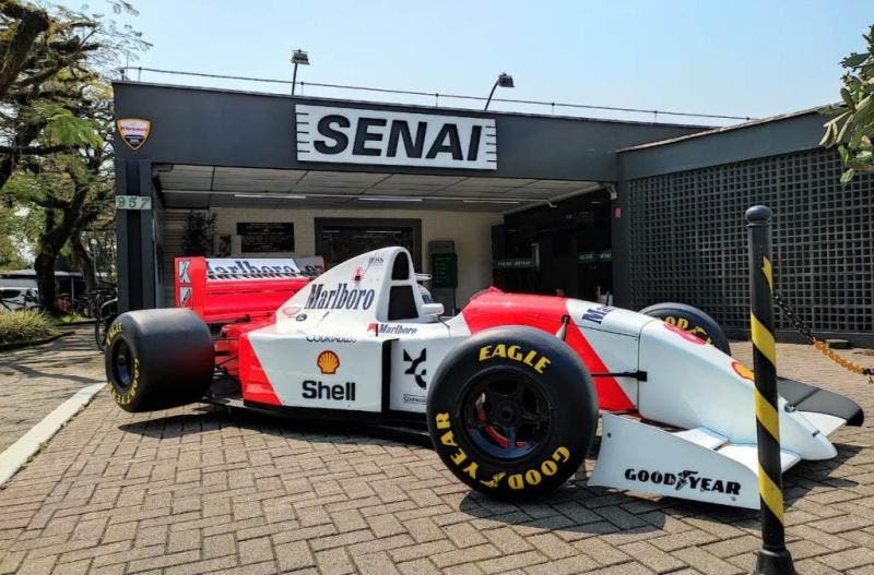O veículo original foi usado por Senna no Grande Prêmio de Fórmula 1 de Interlagos, em 1993. Ele pesa 200 quilos e estará acoplado a um robô Kuka, tecnologia usada pelo Senai em cursos para manipular peças na indústria.
