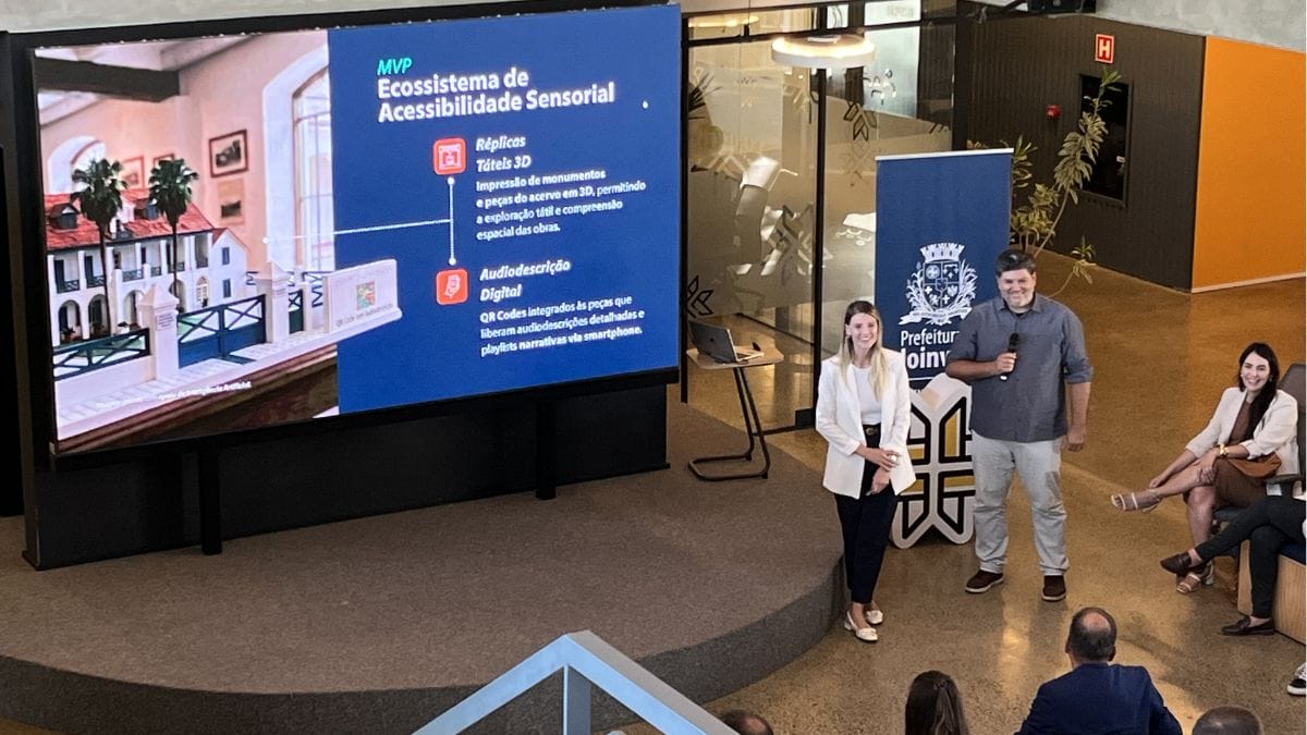 — A nossa proposta é a impressão em 3D dos monumentos culturais de Joinville junto com a audiodescrição. O nosso MVP (projeto de validão) será o prédio do Museu de Imigração com a audiodescrição. O conjunto dos dois juntos é a nossa solução — revela Tatieli.