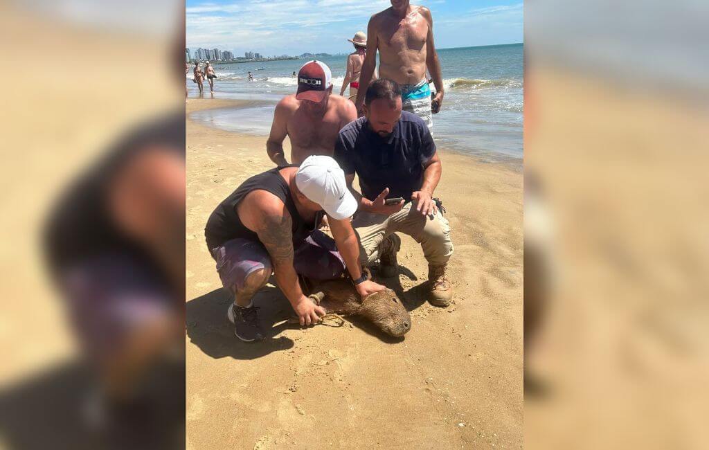 Uma capivara com ferimentos foi resgatada por um agente da Secretaria de Segurança Pública e um voluntário na praia central de Balneário Piçarras. O animal foi encaminhado ao Grupo de Operações de Resgate (GOR), um grupo de resgate voluntário de bichos.