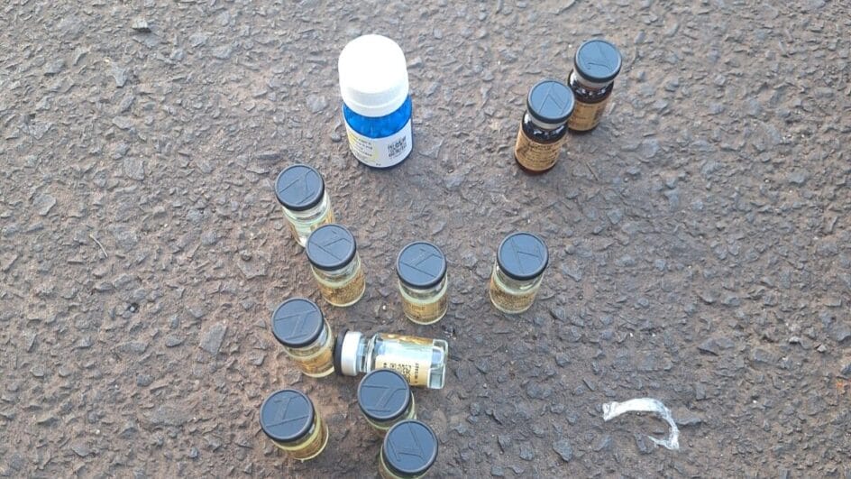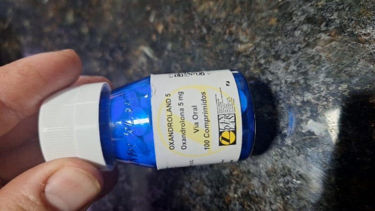 Na revista veicular, os policiais localizaram 16 ampolas de anabolizantes (duas já abertas) e um frasco com cerca de 100 comprimidos de oxandrolona, ambos de origem estrangeira e sem documentação de importação legal. O material foi avaliado em aproximadamente R$ 2 mil.