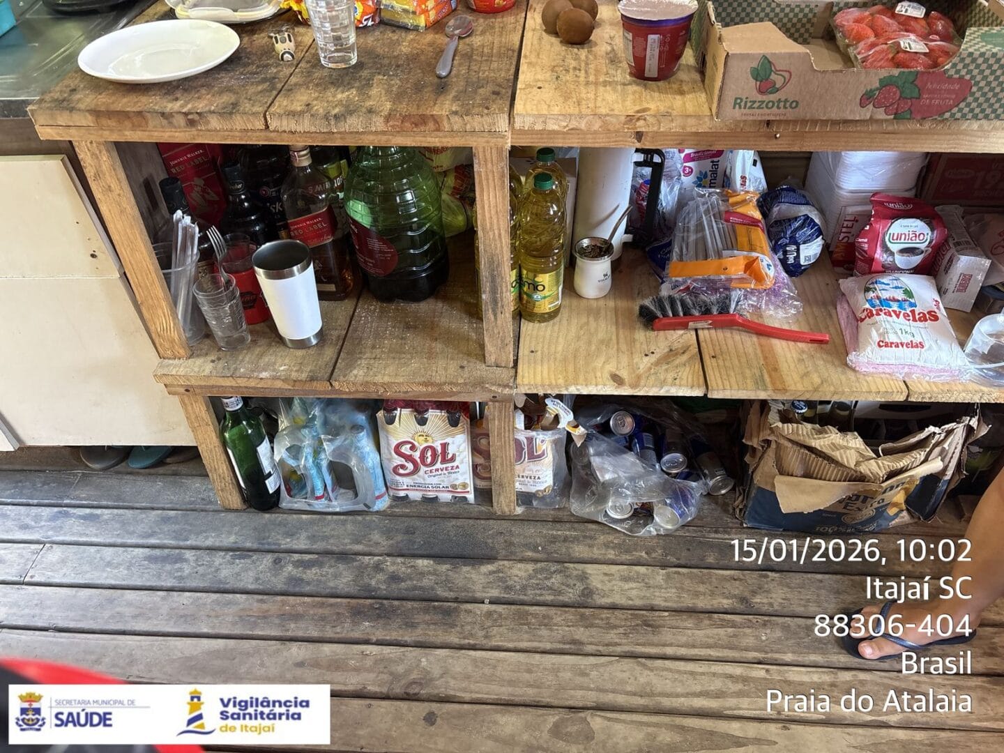 Um restaurante na Praia do Atalaia foi interditado pela Vigilância Sanitária na manhã desta quinta-feira (15), em Itajaí. O estabelecimento não tinha a documentação legal e também não cumpria com as normas básicas de higiene. Agora, o local fechado tem até 48 horas para se adequar às normas.