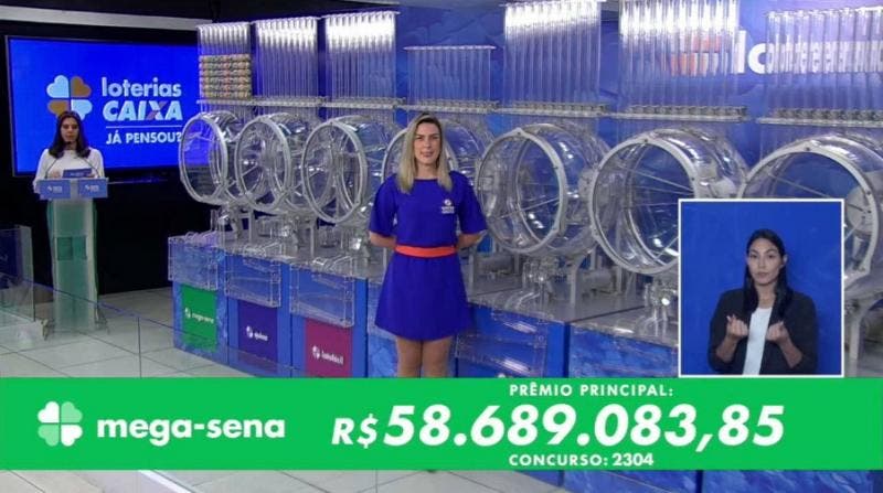 A Caixa Econômica Federal promoveu nesta quarta-feira, dia 30, o concurso 2.304 da Mega-Sena, em São Paulo. O prêmio principal é de R$ 58,6 milhões.