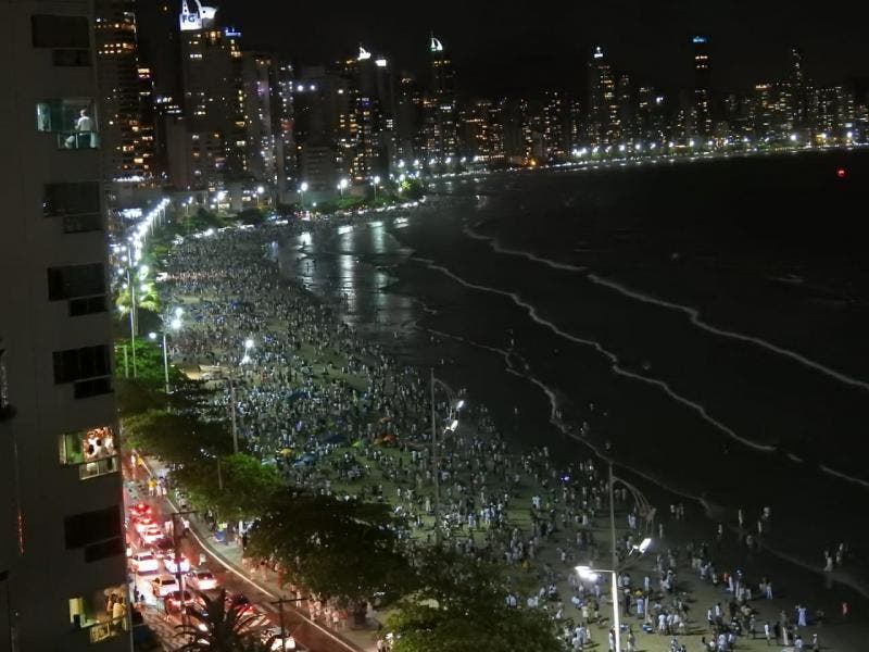 O show de fogos cancelado e as restrições na faixa de areia não afastaram o público da orla da Praia Central de Balneário Camboriú na virada de ano. Embora a movimentação tenha sido reduzida em algumas regiões, como a Barra Sul, houve registro de aglomeração no Centro. O movimento ainda era intenso nas primeiras horas da manhã desta sexta-feira (1º).