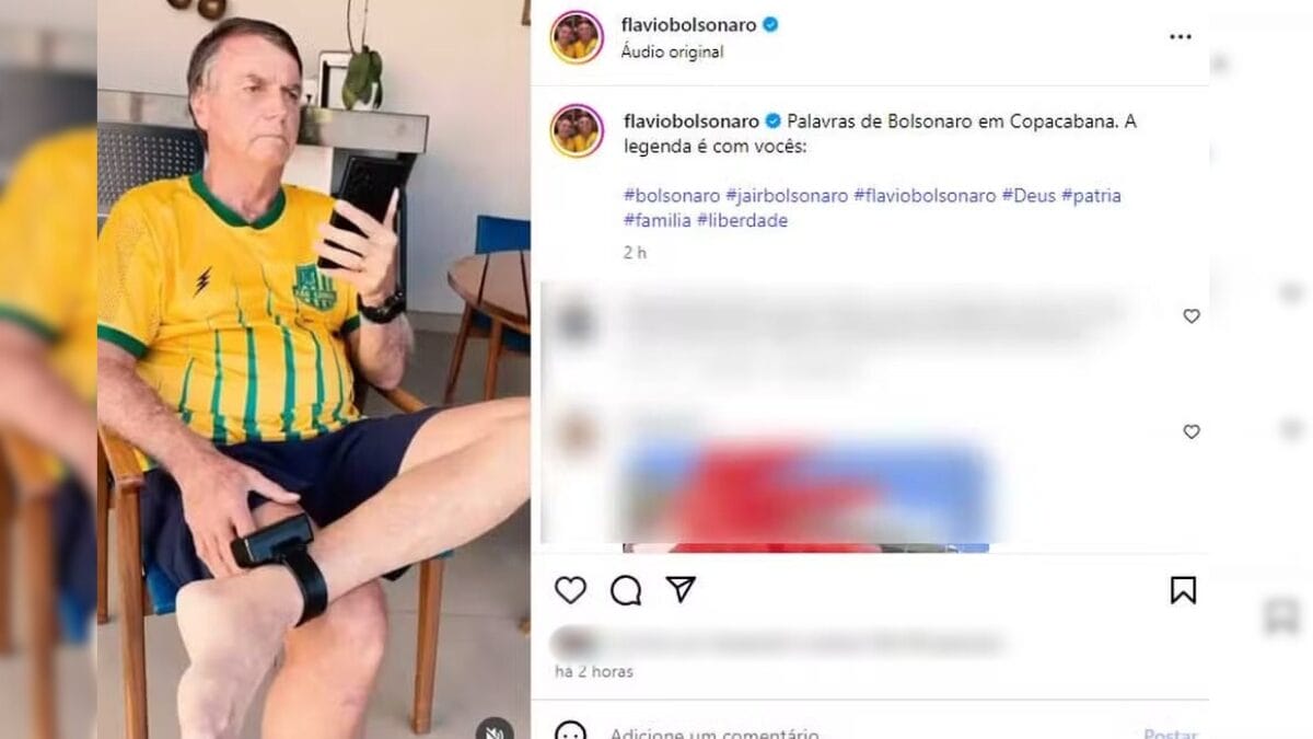Uma postagem nas redes sociais foi feita pelo filho do ex-presidente, o senador Flávio Bolsonaro (PL-RJ), em que Bolsonaro aparece fazendo uma ligação para Flávio durante o ato no Rio de Janeiro, com uma mensagem para os apoiadores: