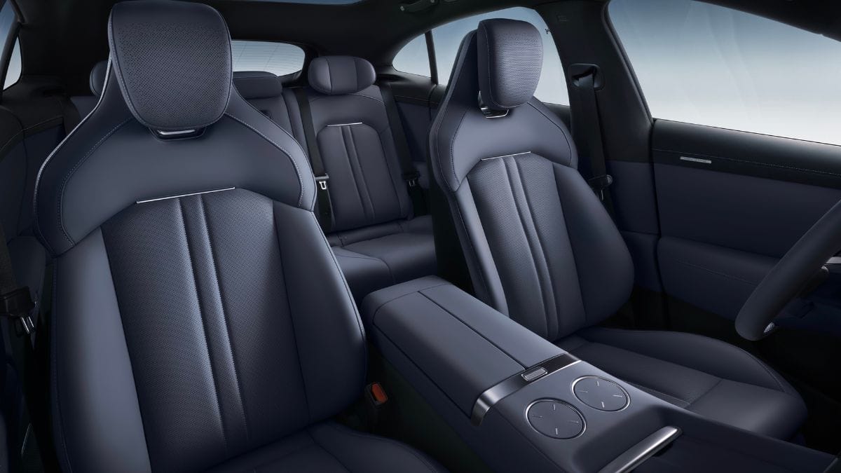 A cabine combina luxo e conforto, com superfícies suaves ao toque, assentos em couro napa com suporte ergonômico e opções de assentos dianteiros de gravidade zero com massagem.
