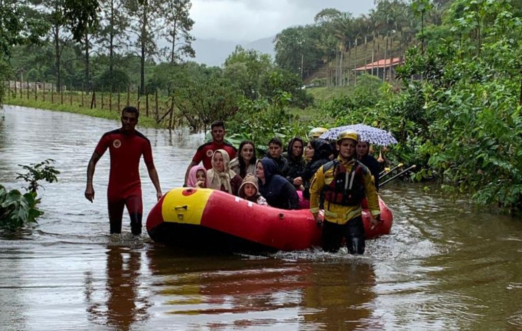 O grupo estava reunido desde sábado (26) em um sítio no bairro Vargem do Braço e ficou preso após o nível do rio subir e bloquear as estradas do município. Conforme os bombeiros, o local em que as pessoas estavam presas era de difícil acesso para as viaturas.