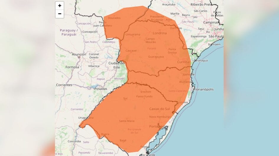 O alto risco para tempestades levou o Instituto Nacional de Meteorologia (Inmet) a divulgar um alerta de perigo para cinco estados brasileiros: Santa Catarina, Rio Grande do Sul, Paraná, São Paulo e Mato Grosso do Sul. O aviso segue válido até as 10h de segunda-feira (23).