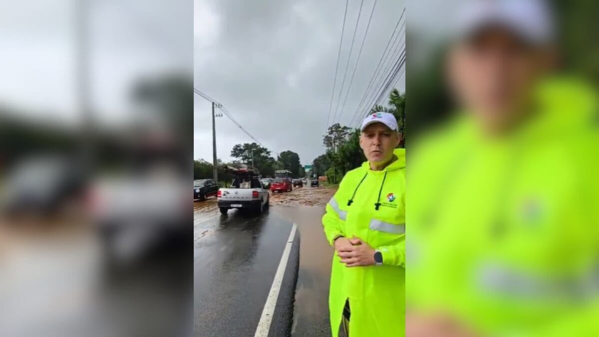 As fortes chuvas causadas por um ciclone extratropical que atinge Santa Catarina na manhã e início da tarde desta terça-feira (9) já refletem no trânsito. Vias precisaram ficar bloqueadas por conta da grande quantidade de água na pista em rodovias federais e estaduais.