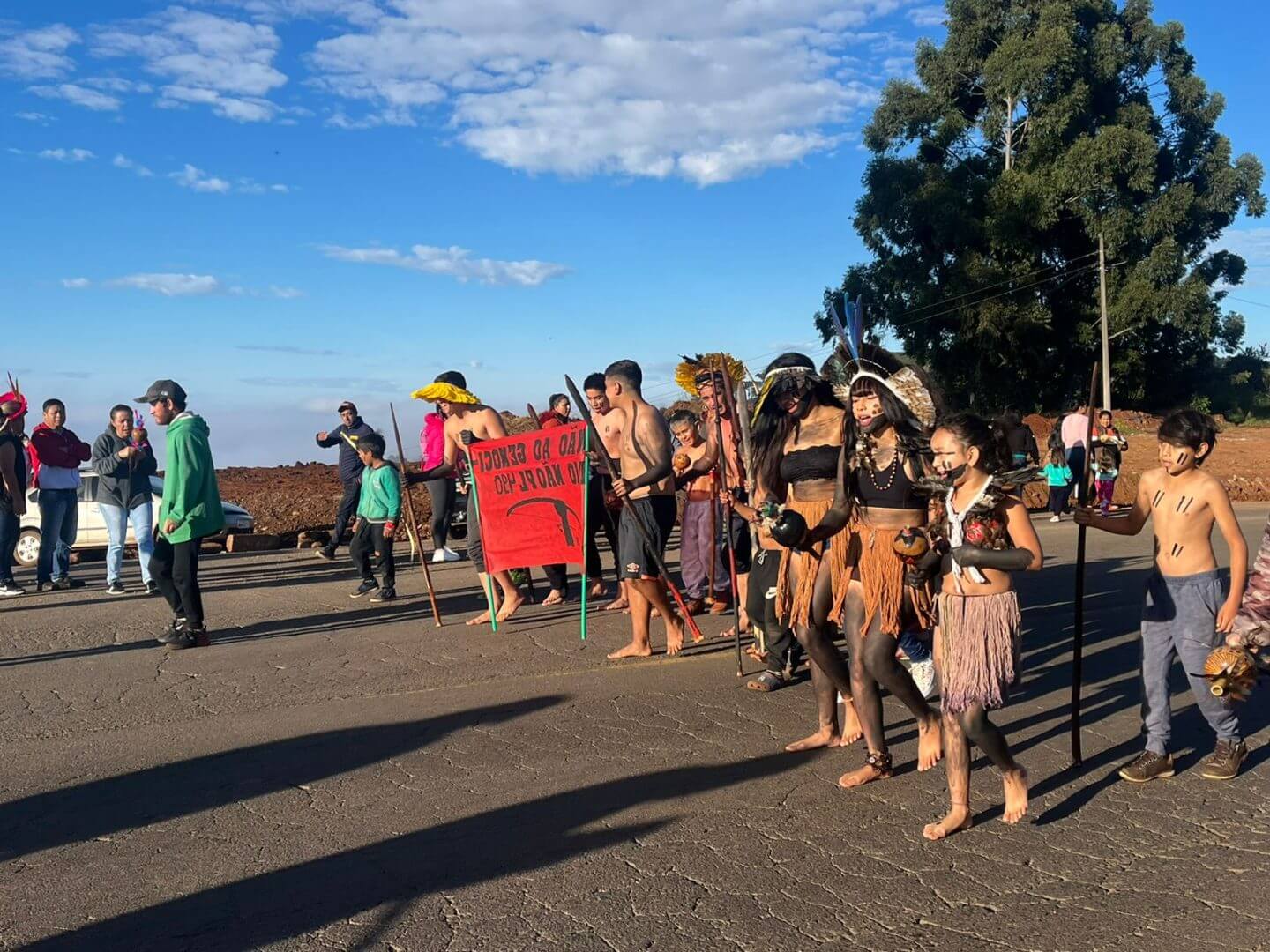 A manifestação é formada por indígenas das Aldeias Toldo Chimbangue e Condá, de Chapecó. Também há pessoas de aldeias de Ipuaçu.