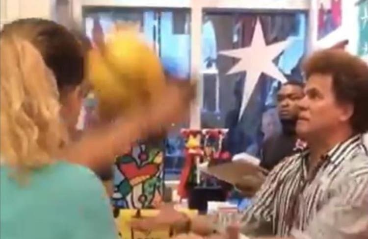 A mulher, que quebrou a obra avaliada em US$ 4.800 (cerca de R$ 25,9 mil) afirma nos vídeos que é dona de um restaurante que fica na frente da loja do artista e que era fã dele. “Considerava você um homem respeitável, mas me equivoquei”, disse ela a Britto em uma galeria dele, em Miami, nos EUA.