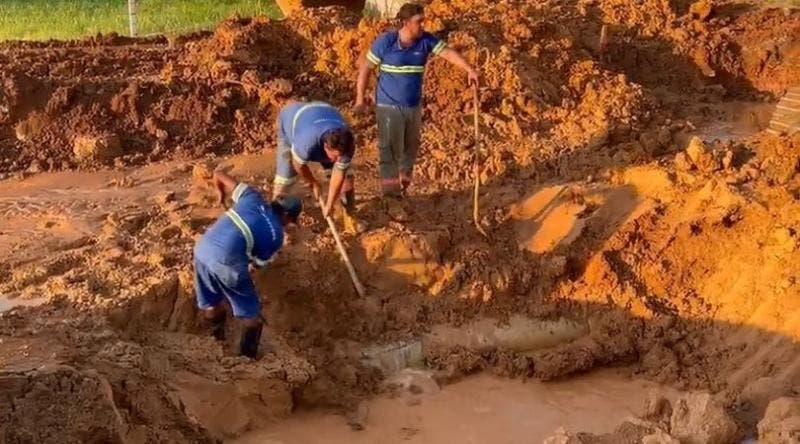 Foram necessárias algumas horas para secar o local inundado e, somente pela manhã, foi possível abrir novamente o registro para limpar a água suja da tubulação e pressurizar a rede.
