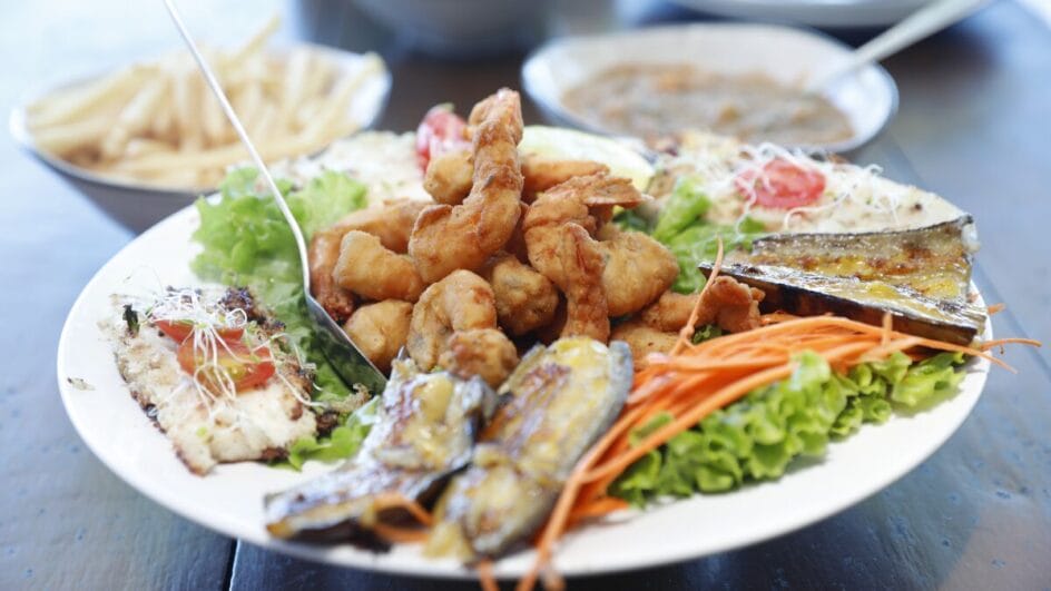 São mais de 15 restaurantes que vão do ponto 13 ao 21 com os peixes e frutos do mar como principal pedido. A carapeva, peixe pescado ali mesmo na Lagoa, é a estrela.