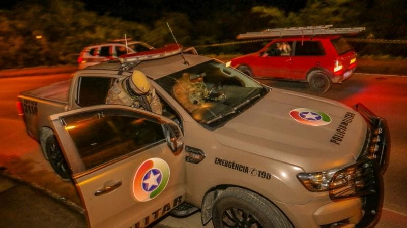 A PM foi acionada às 23h. A vítima relatou que bandidos armados entraram no estabelecimento e levaram dinheiro, bebidas e o celular dela. Com as informações repassadas pela central de emergências, viaturas se deslocaram ao local, na Rua Doutor Pedro Zimmermann.