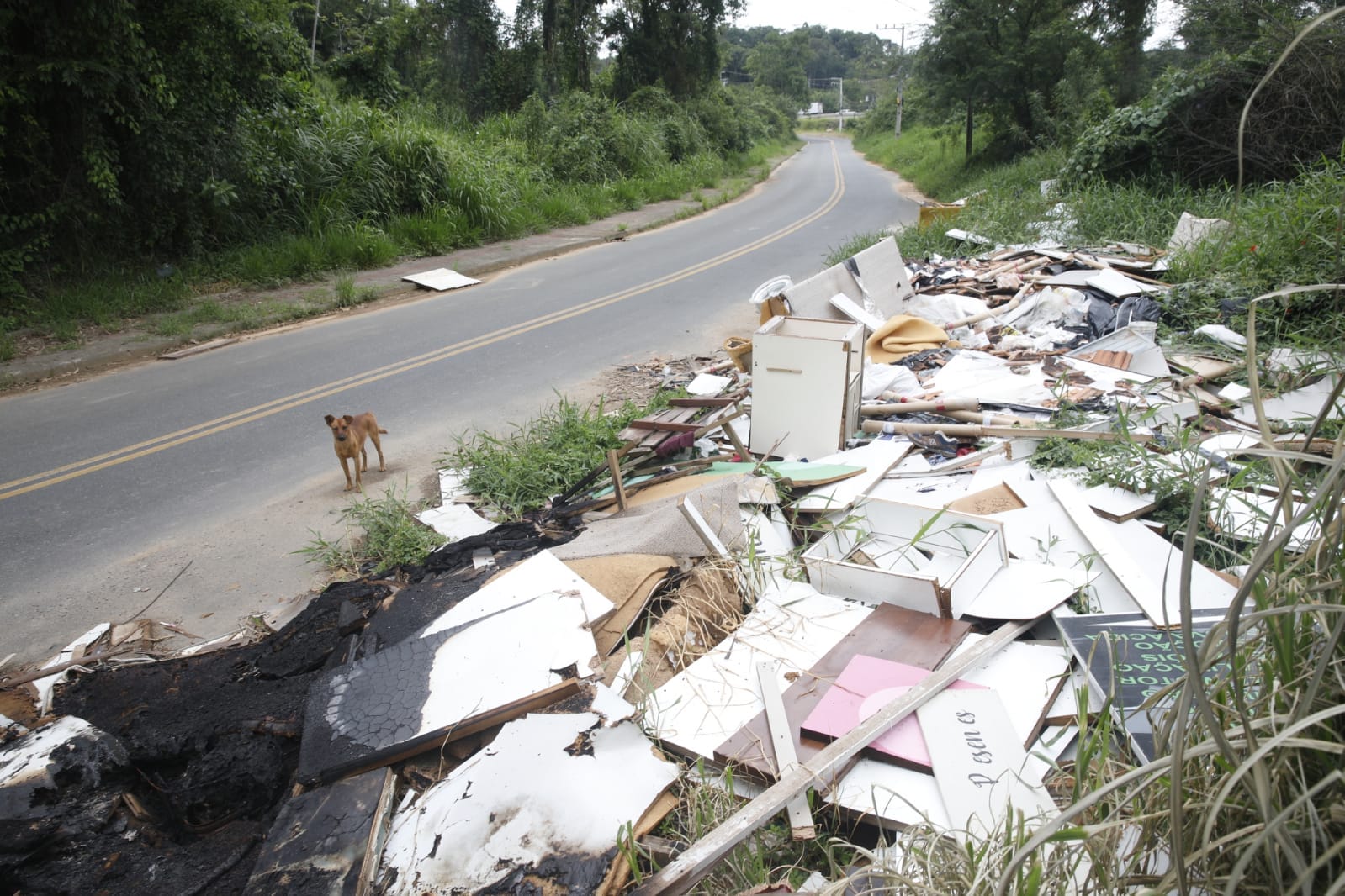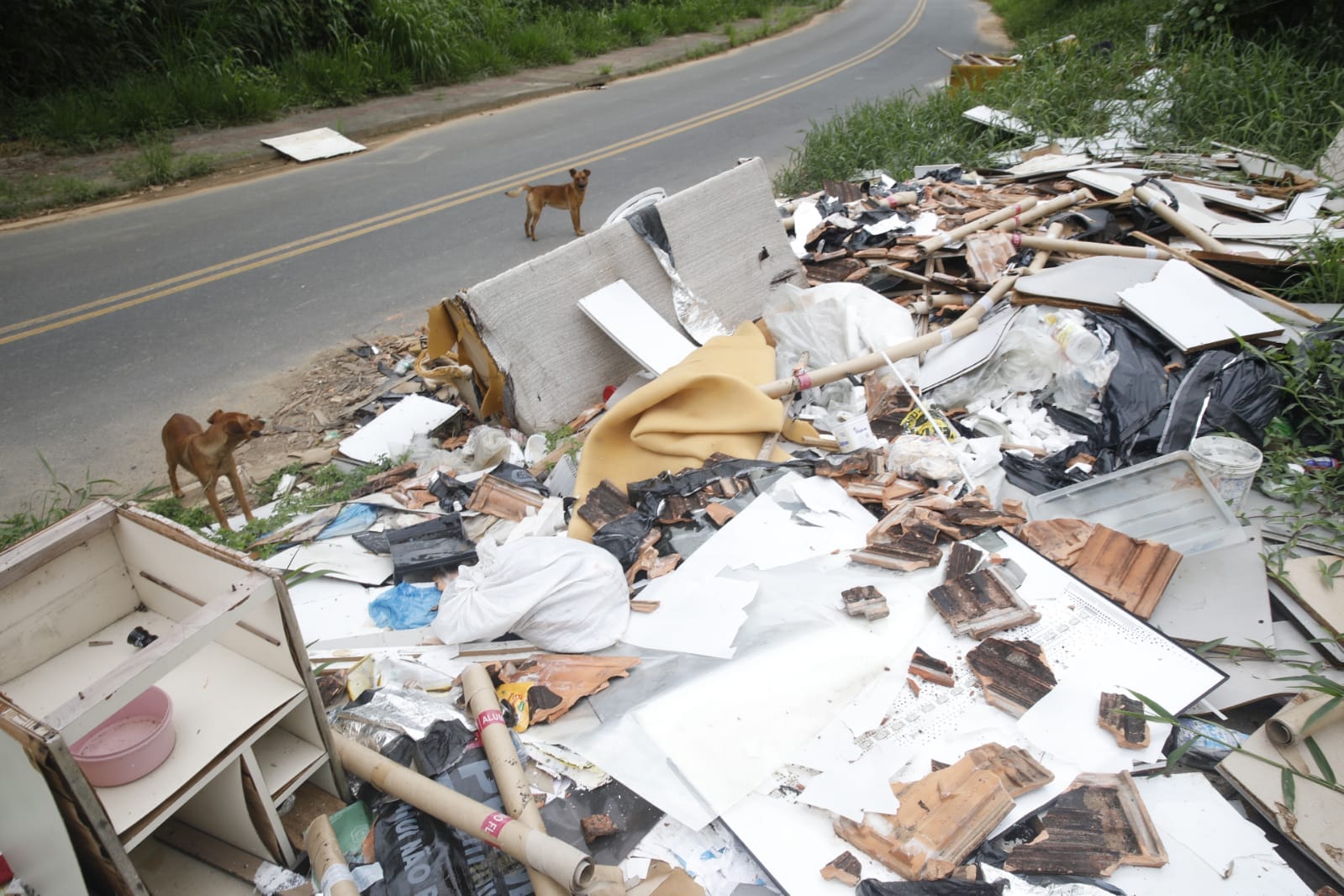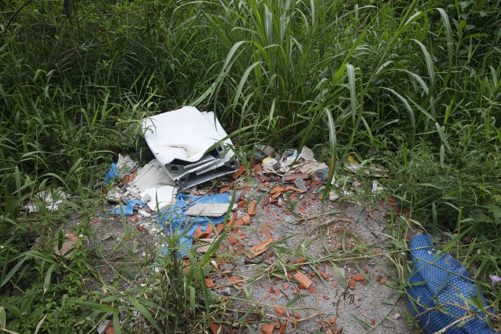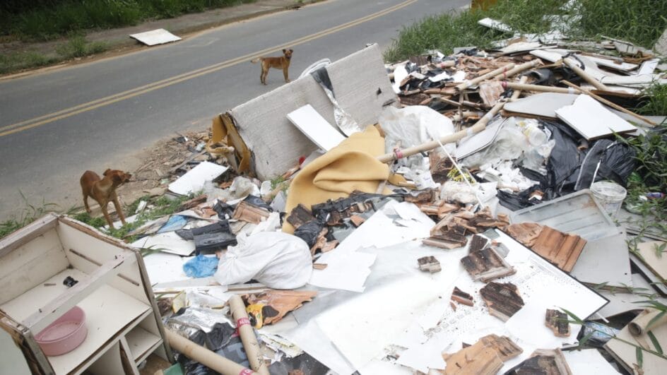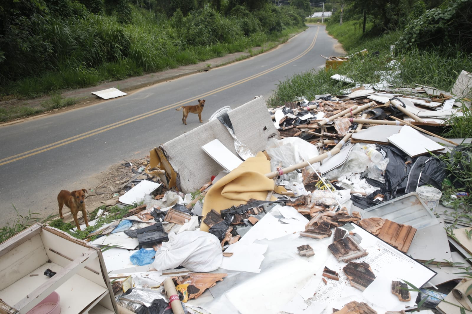 O repórter-fotográfico Patrick Rodrigues flagrou o lixão a céu aberto na manhã desta segunda-feira (19). No local, materiais de construção, como tijolos e telhas, estavam espalhados pelo chão, junto de outros objetos como móveis quebrados, utensílios domésticos e até sofás. Pedaços de madeira, que eram de móveis quebrados e desmontados, aparentam até terem sido incendiados no local. Isso sem contar com as caixas de plástico com garrafas de vidro e até potes de plástico que acumulam água e representam um risco de saúde por ser focos de mosquito da dengue.
