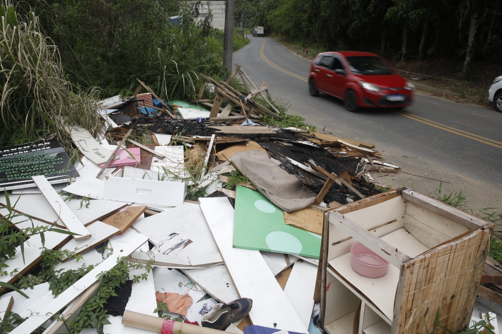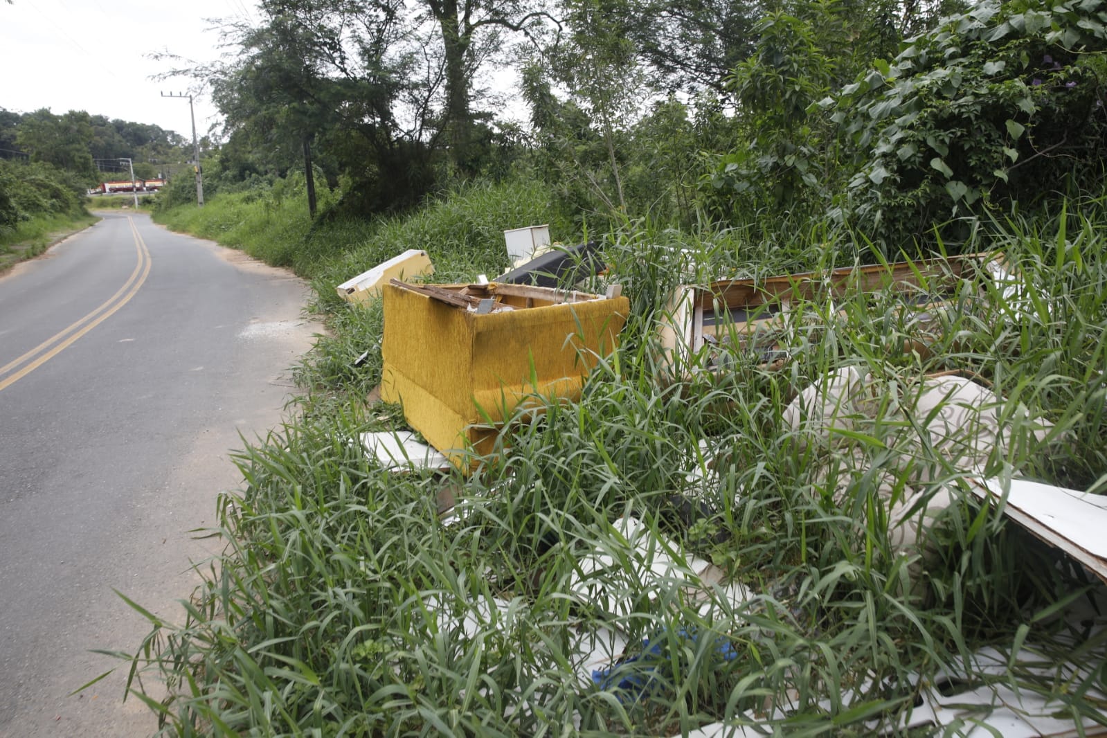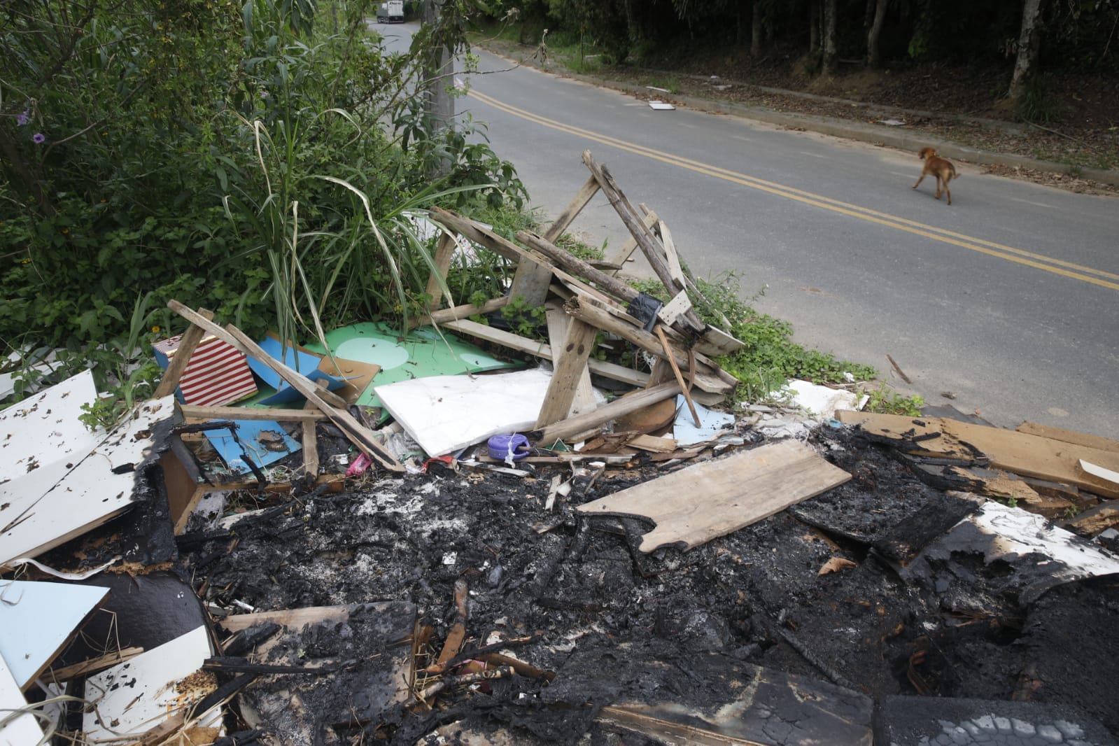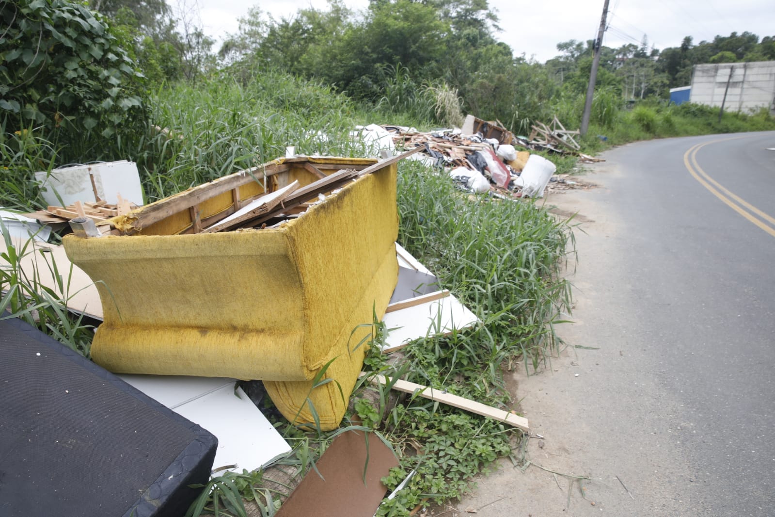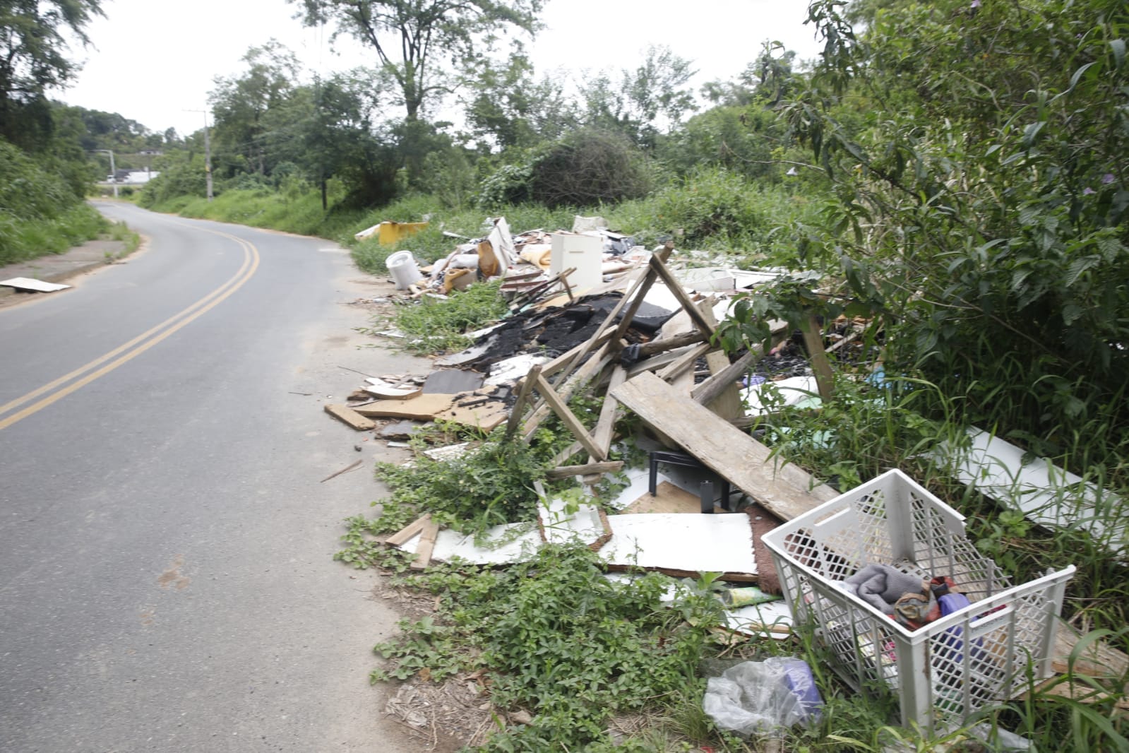 O repórter-fotográfico Patrick Rodrigues flagrou o lixão a céu aberto na manhã desta segunda-feira (19). No local, materiais de construção, como tijolos e telhas, estavam espalhados pelo chão, junto de outros objetos como móveis quebrados, utensílios domésticos e até sofás. Pedaços de madeira, que eram de móveis quebrados e desmontados, aparentam até terem sido incendiados no local. Isso sem contar com as caixas de plástico com garrafas de vidro e até potes de plástico que acumulam água e representam um risco de saúde por ser focos de mosquito da dengue.