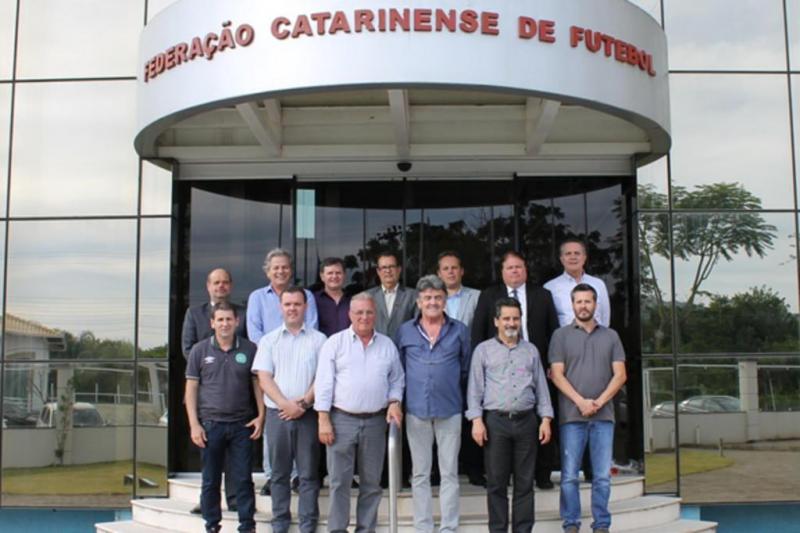 A Diretoria da FCF, os membros do Conselho Fiscal e o Presidente do Tribunal de Justiça Desportiva participaram da reunião no gabinete da Presidência, em Balneário Camboriú.