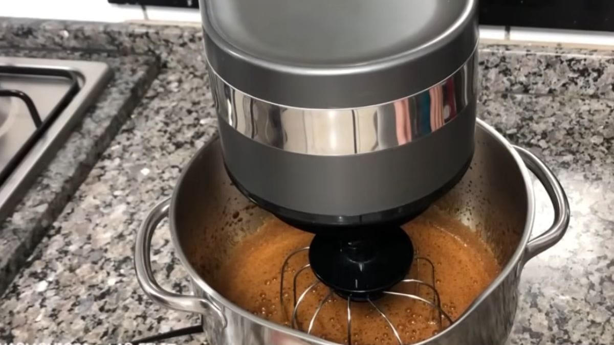 Transfira para um pote fechado, leve ao congelador até esfriar. Sirva com leite quente, gelado, água ou puro como sorvete; use em bolos de pote.