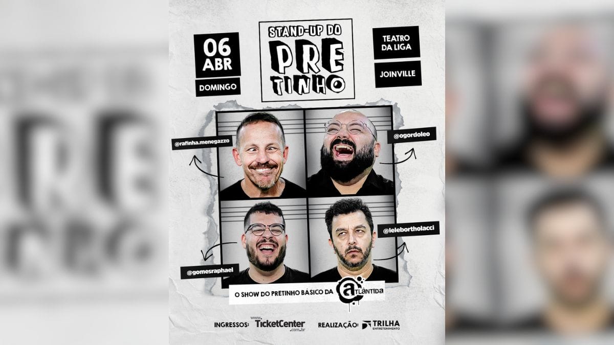 O Pretinho Básico, programa de humor de rádio mais ouvido do sul do Brasil, vai se apresentar em shows de stand up comedy em Jaraguá do Sul e Joinville, nos dias 5 e 6 de abril, respectivamente. Em 2025, o projeto completa 18 anos no ar, pela Rádio Atlântida.