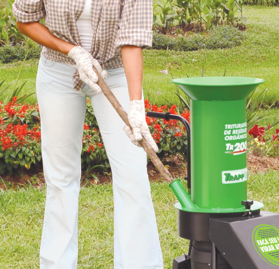Na Trapp, referência nacional em equipamentos para jardinagem, o Triturador Orgânico TR-200 é um dos aliados mais completos para quem quer começar o processo em casa. O equipamento tritura galhos, folhas e outros resíduos do jardim, para acelerar a decomposição e facilitar a produção de um adubo orgânico rico em nutrientes.