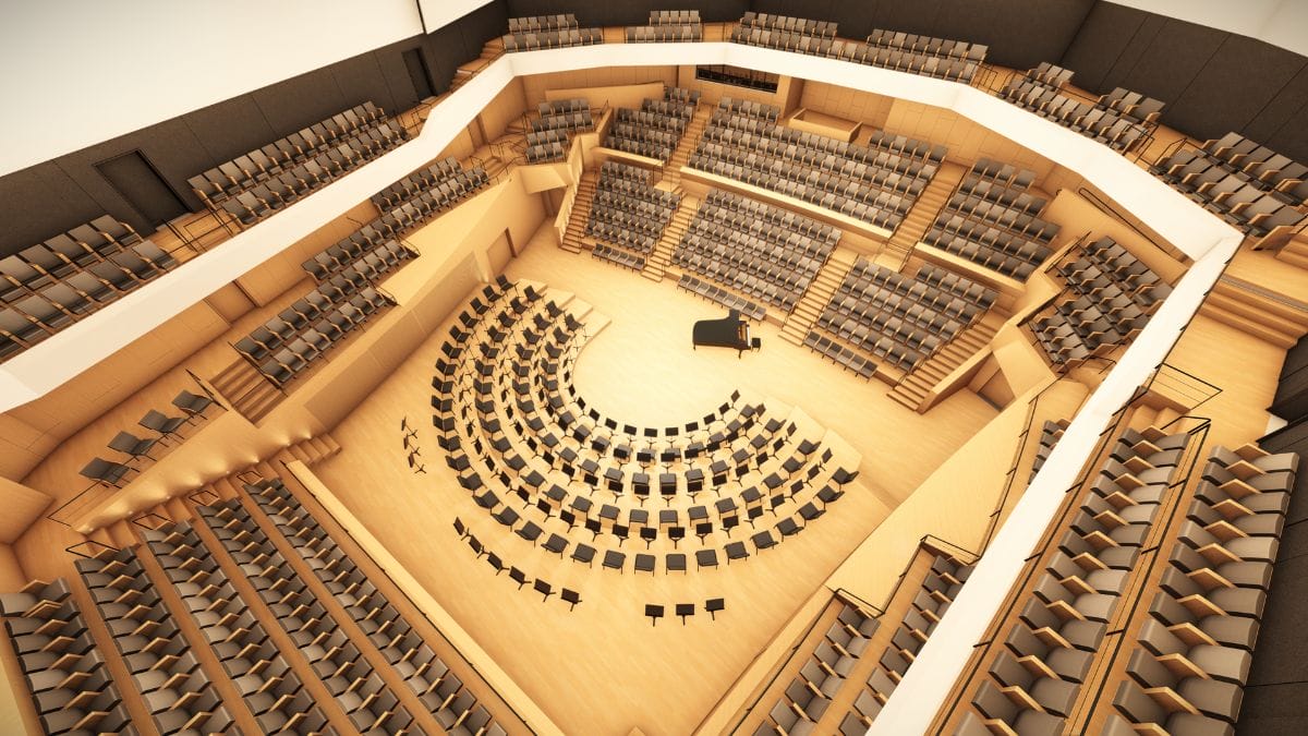 O Concert Hall foi projetado para acomodar 859 pessoas sentadas e será a “casa” da Orquestra Filarmônica Musicarium a partir de 2030. Sua acústica de excelência será assinada pela renomada Nagata Acoustics, referência mundial no segmento, responsável por algumas das melhores salas de concerto do mundo, como a Philharmonie, de Paris, e a Elbphilharmonie em Hamburgo.