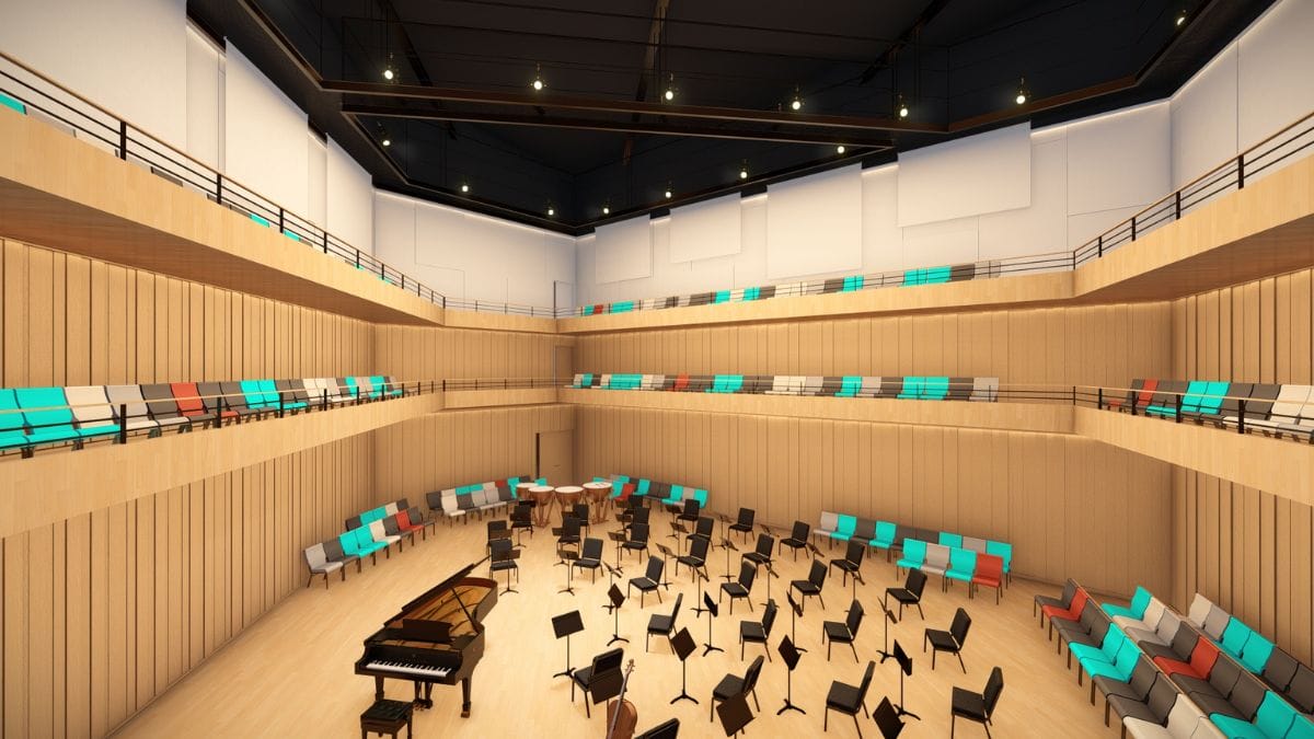Serão mais de 50 salas de estudo e ensaio: 21 para conjuntos de câmara, 31 para estudo individual, duas salas de teoria, uma sala ampla para ensaio, estúdio de gravação e streaming de orquestra e grandes grupos, além de espaços dedicados à lutheria, manutenção de instrumentos, biblioteca, e áreas dedicadas ao bem-estar e de convivência.