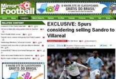 Sandro pode sair do Tottenham e ir jogar na Espanha. Segundo o jornal inglês Daily Mirror, o volante seria negociado com o Villareal por 12 milhões de libras. O ex-jogador colorado – atualmente na Argentina com a Seleção Brasileira para disputa da Copa América – também estaria sendo pretendido pela Roma em uma possível troca com o atacante Mirko Vucinic.