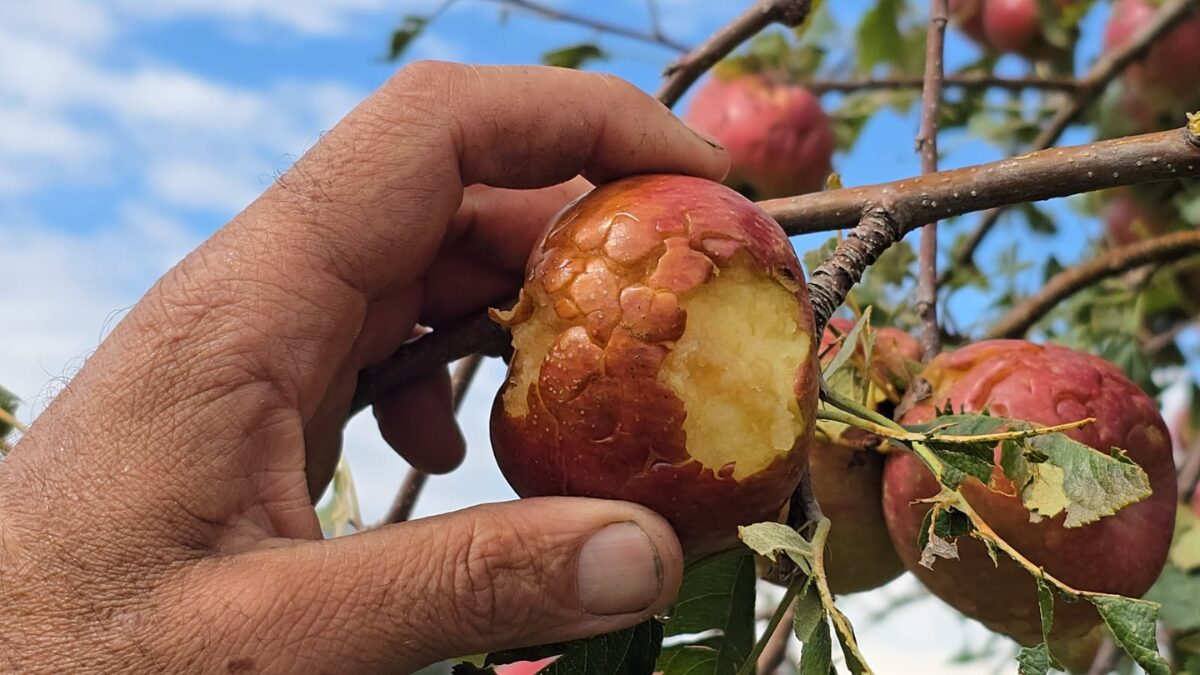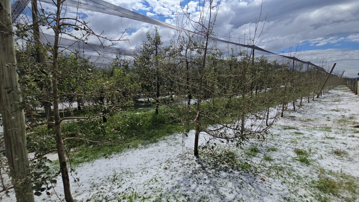 Vários pomares sofreram prejuízos, com frutas danificadas e estruturas de proteção comprometidas. Em algumas propriedades, os palanques das telas antigranizo chegaram a quebrar devido ao peso acumulado do gelo.