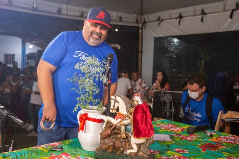 O manezinho Tarcíbulo Serratine Neto é devoto de São Jorge. A relação com o santo vem de família. Quando era criança, o avô tinha um terreiro de umbanda. A imagem que guarda, conta, é do avô um medalhão do santo guerreiro no pescoço.