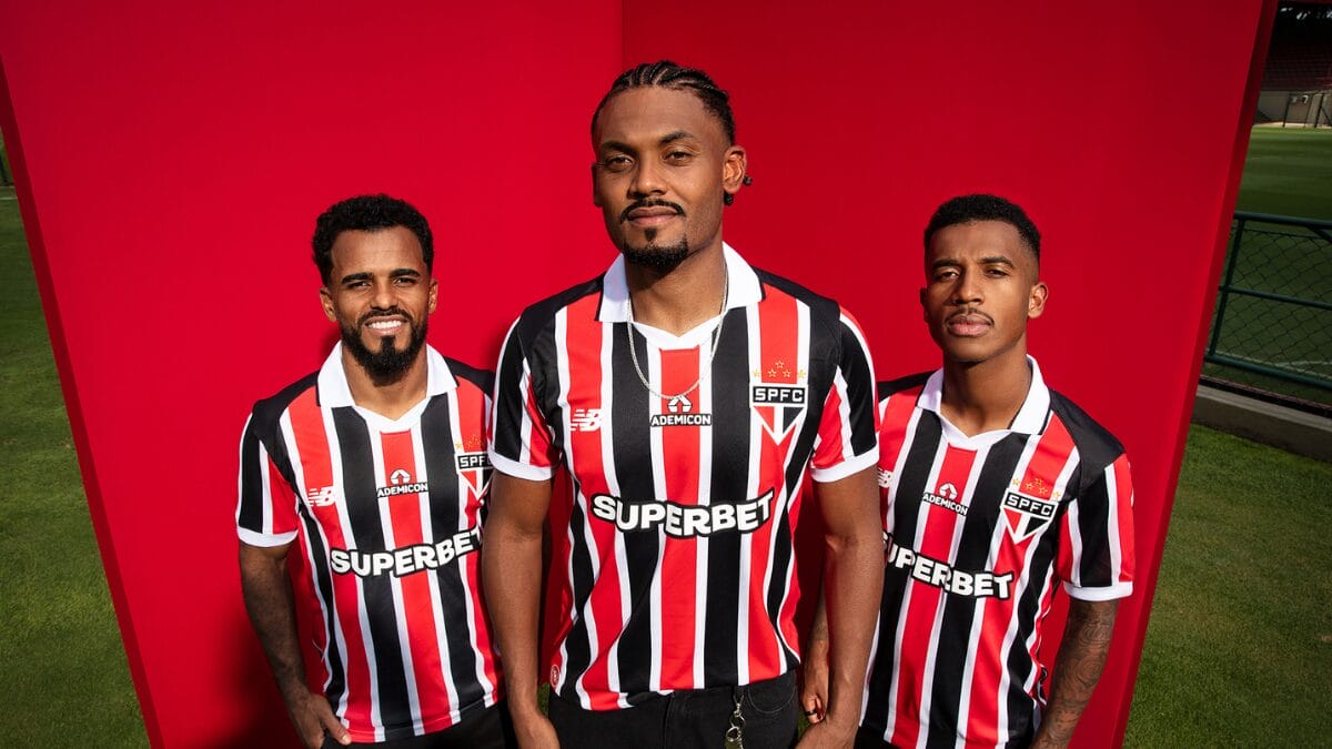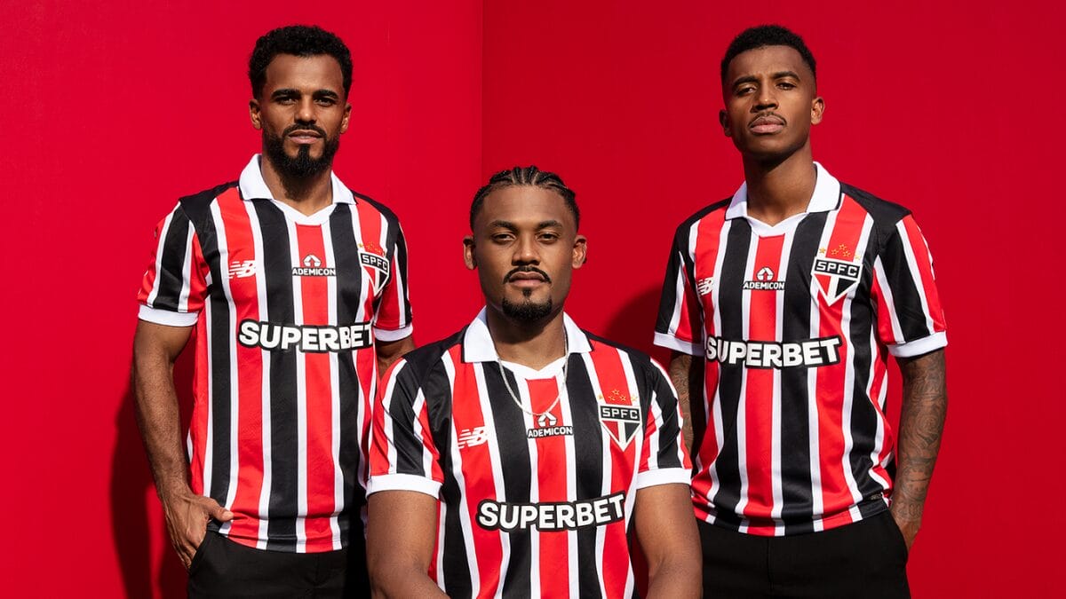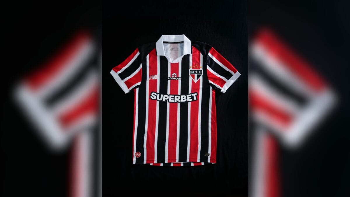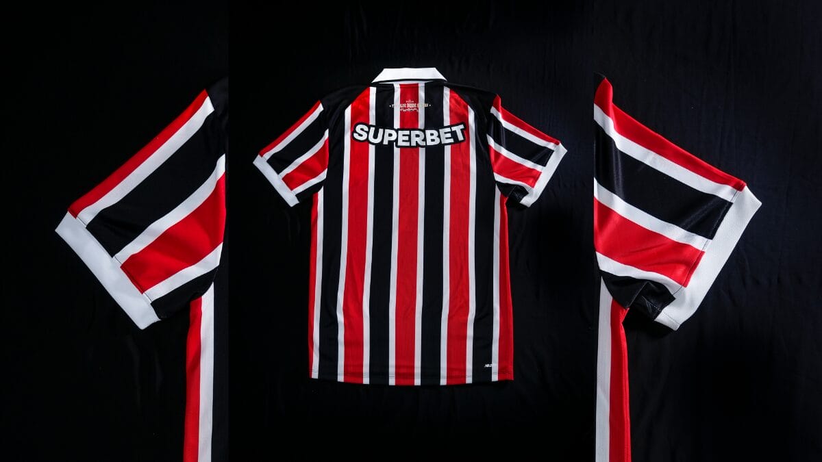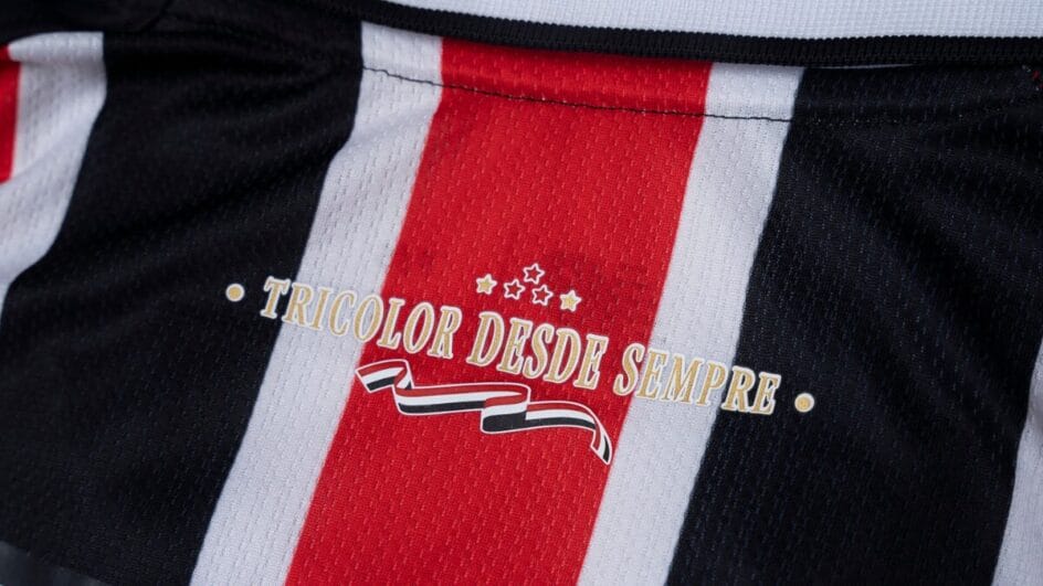 O novo uniforme tem uma estética tradicional, fiel às origens, mas a execução é moderna, com linhas bem definidas e acabamento refinado. O grande destaque está nas listras verticais em vermelho, branco e preto, que dominam todo o corpo da peça e remetem a uniformes antigos, históricos, do São Paulo.