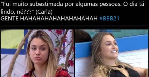 O pessoal da casa desde a hora que a Carla voltou#bbb21 pic.twitter.com/cZs5OZZQ07