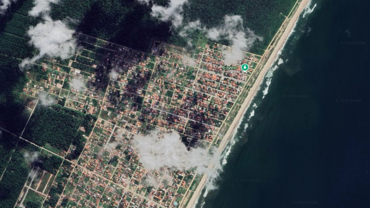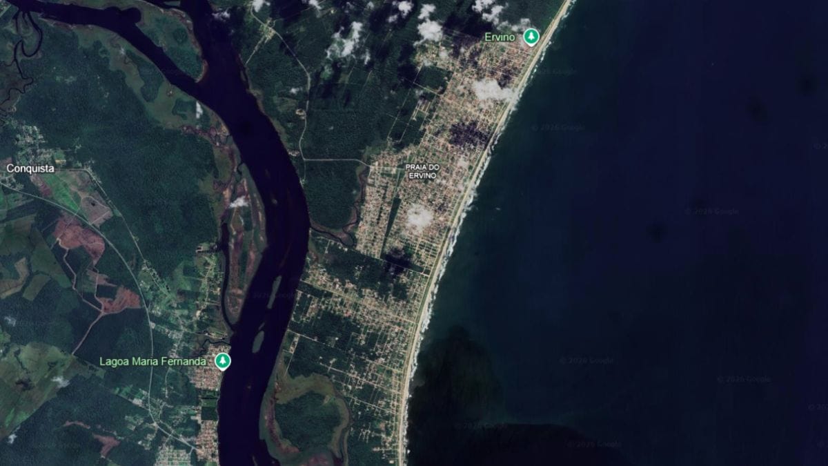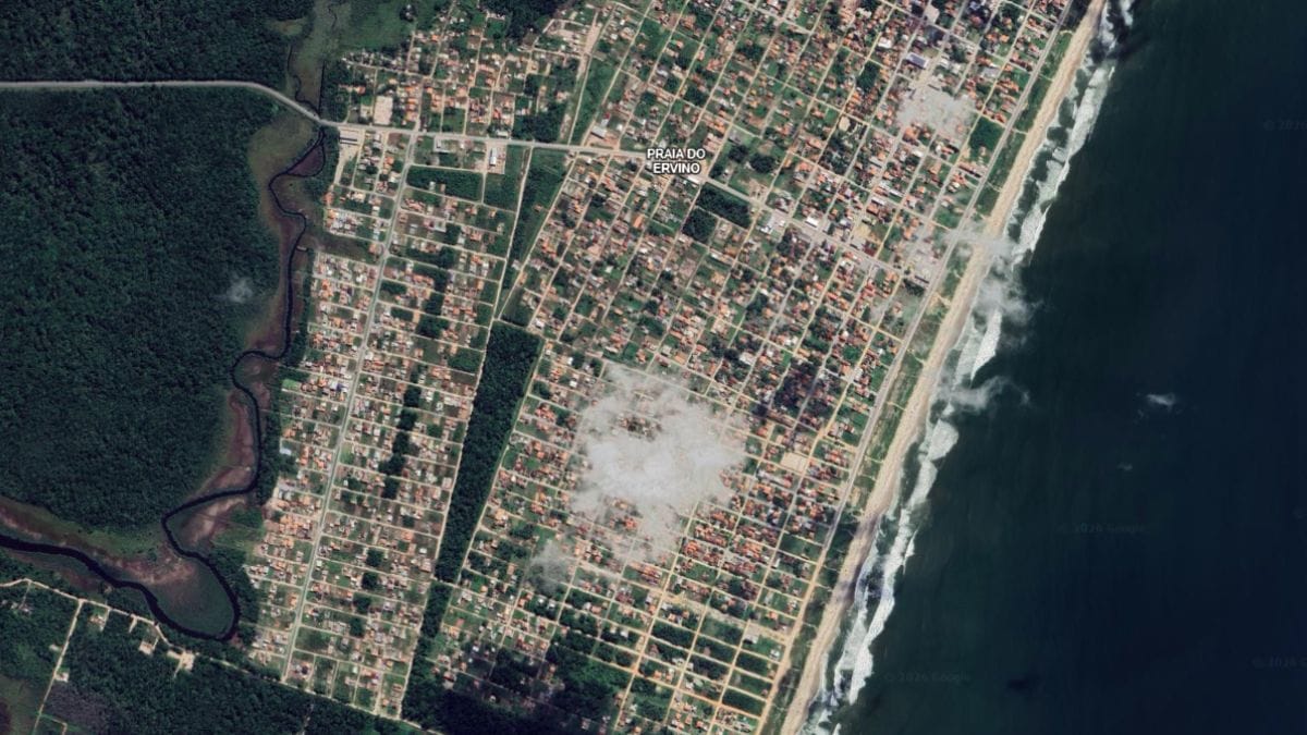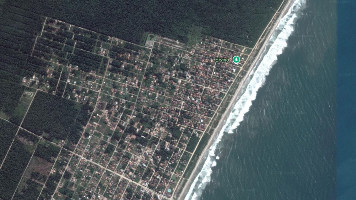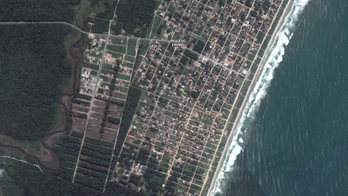 As imagens feitas por satélite mostram o impressionante crescimento pelo qual passou a praia do Ervino, localizada em São Francisco do Sul. A região, que foi eleita pelo selo Bandeira Azul de qualidade ambiental, tem atraído cada vez mais turistas e novos moradores. Com isso, é possível ver a mudança na paisagem local nos últimos 20 anos. É o que mostra o satélite.