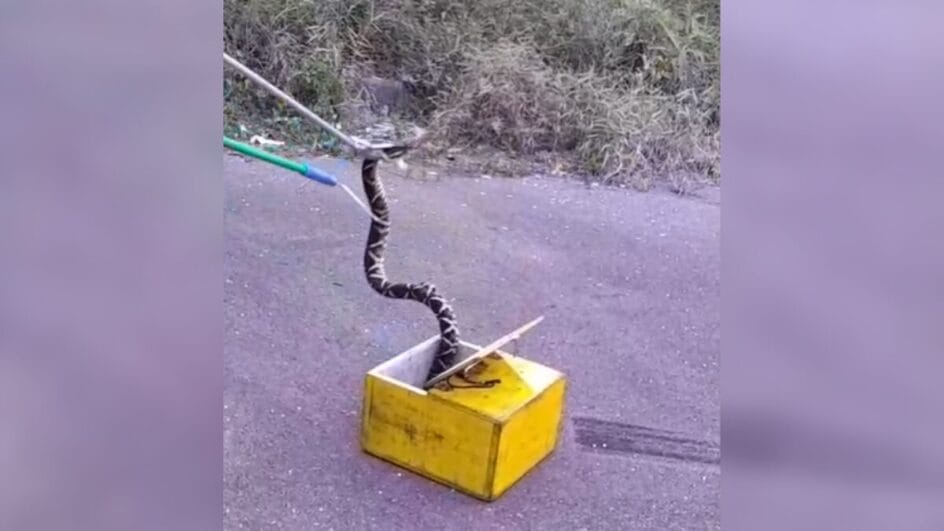 O animal, que possui um veneno mortal, deu trabalho para os bombeiros, que precisaram capturá-la com ajuda de um gancho, pinça e caixa específica para animais peçonhentos. Em um vídeo cedido pela guarnição, é possível ver a cobra tentando fugir, mas sendo capturada em seguida. Depois, o animal foi solto em seu habitat natural.
