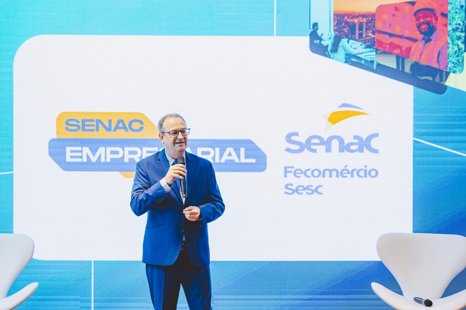 No palco, os parceiros desta edição, Gilberto Seleme, presidente da FIESC; Fabiano Battisti, diretor regional do Senac Santa Catarina; Carlos Henrique Ramos Fonseca, diretor superintendente do Sebrae Santa Catarina; e Admir Dalla Cort, secretário de Agricultura e Pecuária de Santa Catarina, destacaram a importância do empreendedorismo para o desenvolvimento do Estado.