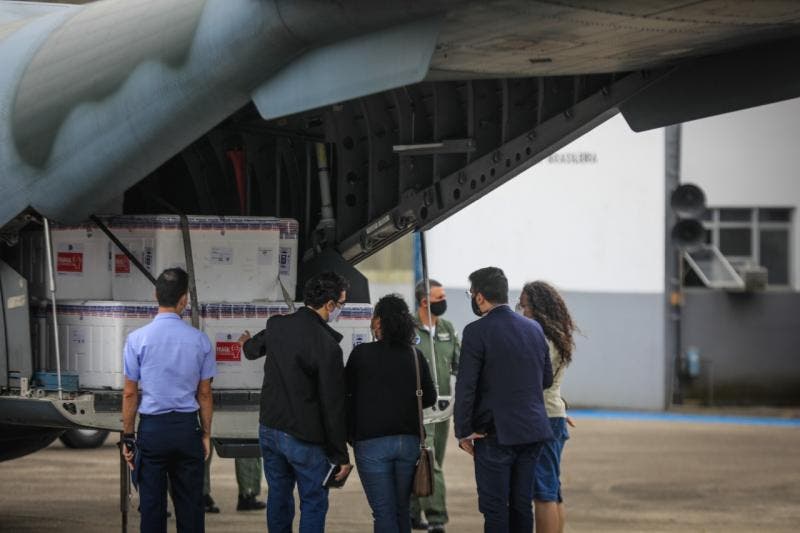 A remessa com as 144 mil doses veio em um avião da Força Aérea Brasileira (FAB), que deixou Guarulhos, na Grande São Paulo, e chegou por volta das 11h30min na Base Aérea de Florianópolis.