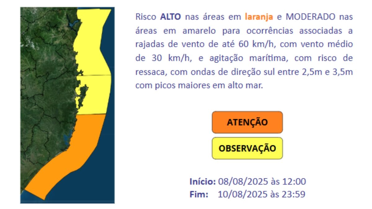 O fenômeno é associado ao ciclone extratropical que se forma no mar no Sul do Brasil, que irá intensificar ventos do quadrante Sul. Além disso, a partir de sábado (9), a lua irá da fase crescente para cheia, elevando a maré.