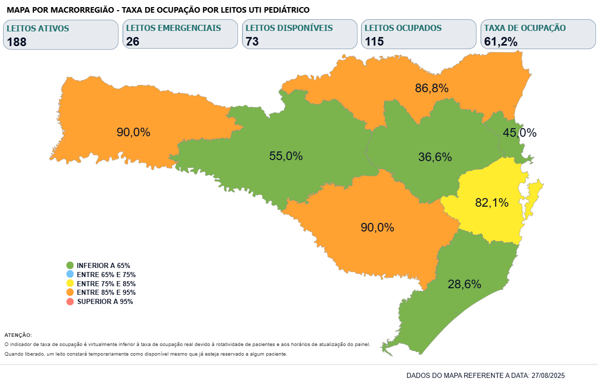 - Grande Florianópolis: 94% (9 leitos disponíveis)