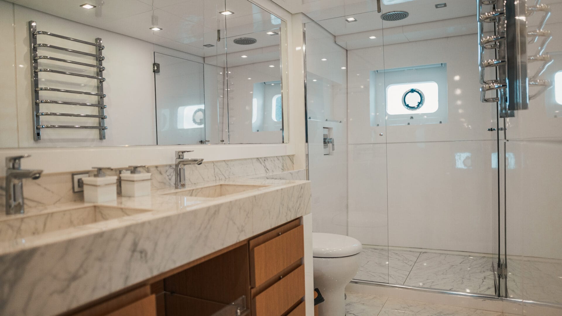 A circulação entre os ambientes ocorre com total tranquilidade: é possível transitar entre o salão, as suítes, o flybridge e a praça de popa com naturalidade, usufruindo de espaços generosos que entregam o mesmo acolhimento e comodidade que você só tem em sua própria casa, mas em alto-mar.