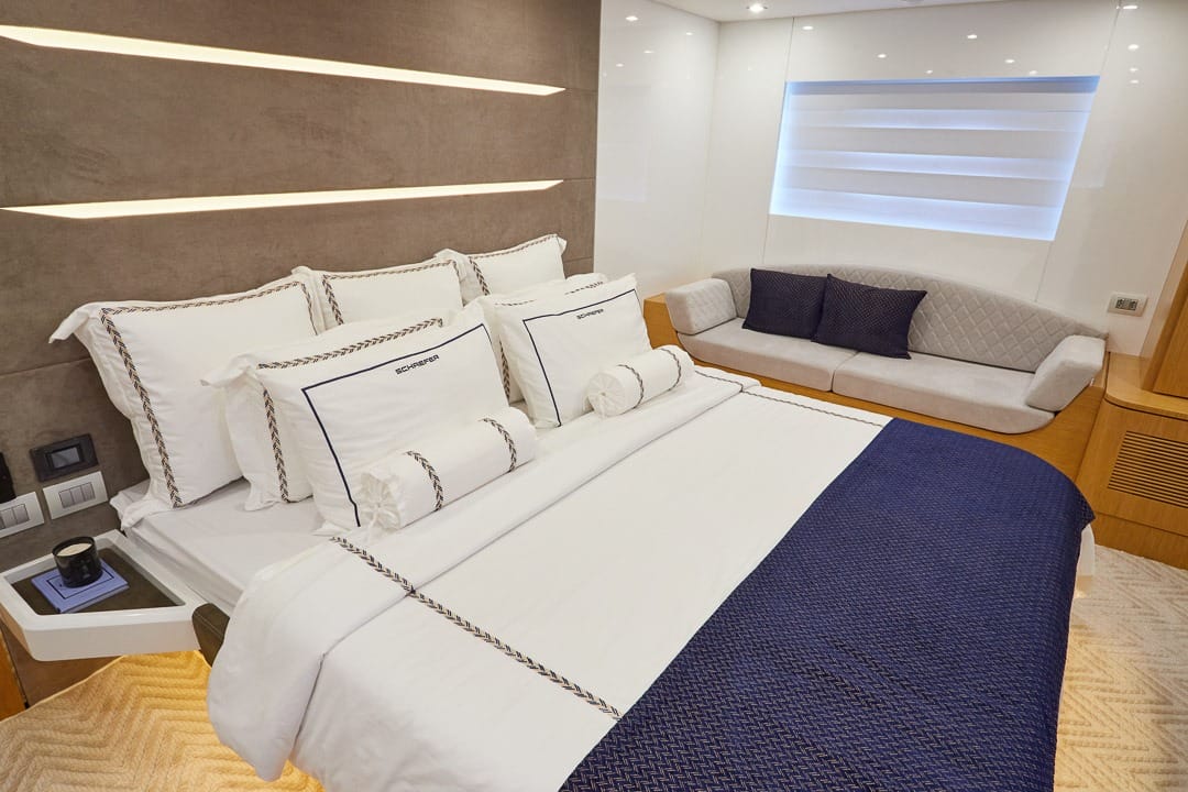 Antes mesmo de navegar, os números da Schaefer 770 já evidenciam a magnitude do projeto: amplas proporções, autonomia para travessias longas e uma estrutura voltada à convivência com máximo requinte.