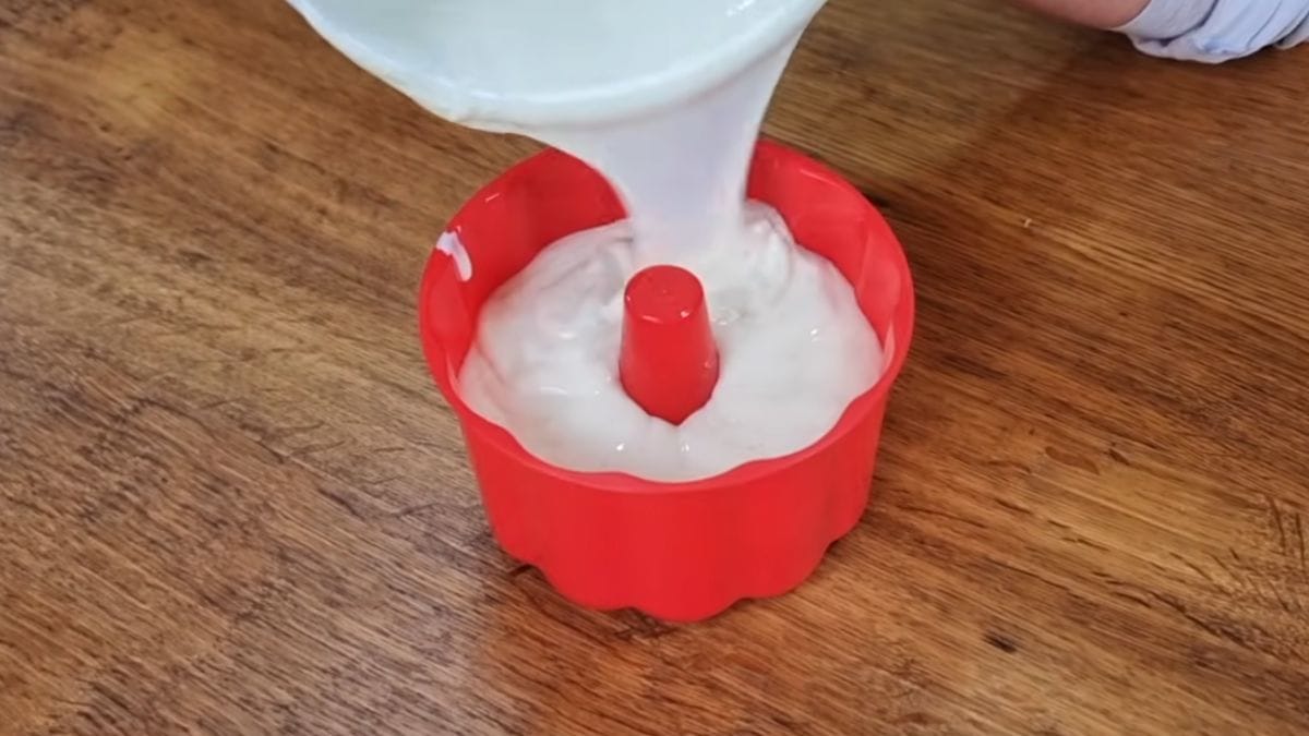 Agora, leve a massa para uma forma de pudim untada com óleo de coco e coloque na geladeira. Sirva como preferir.