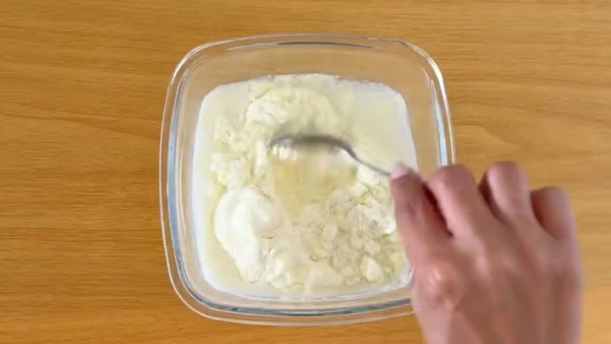 - Em uma tigela, adicione o leite em pó e a água. Misture bem até atingir uma consistência cremosa (nem muito grossa, nem muito rala);