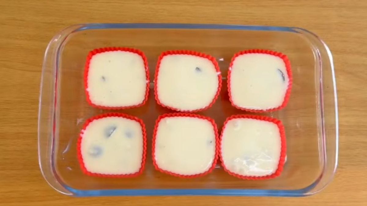- Coloque as frutas (uvas ou morangos) no fundo de forminhas de silicone;