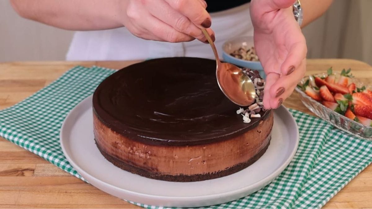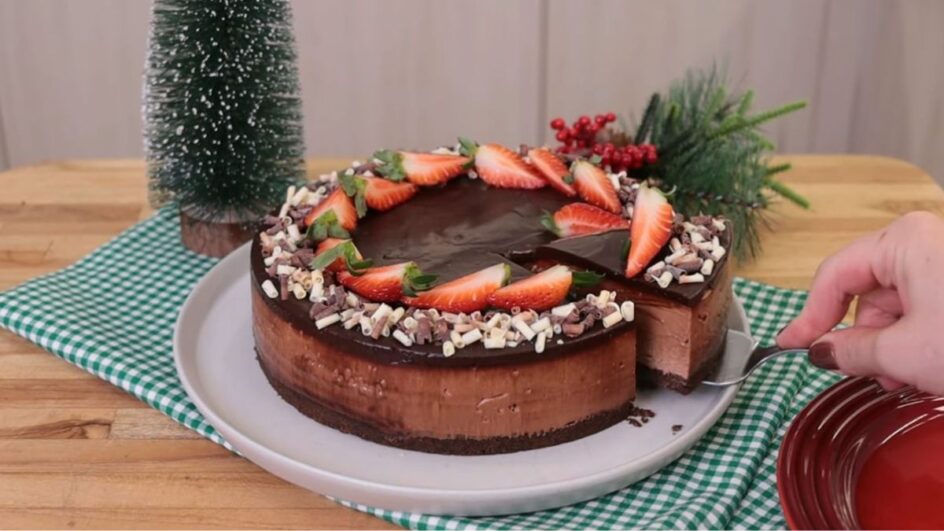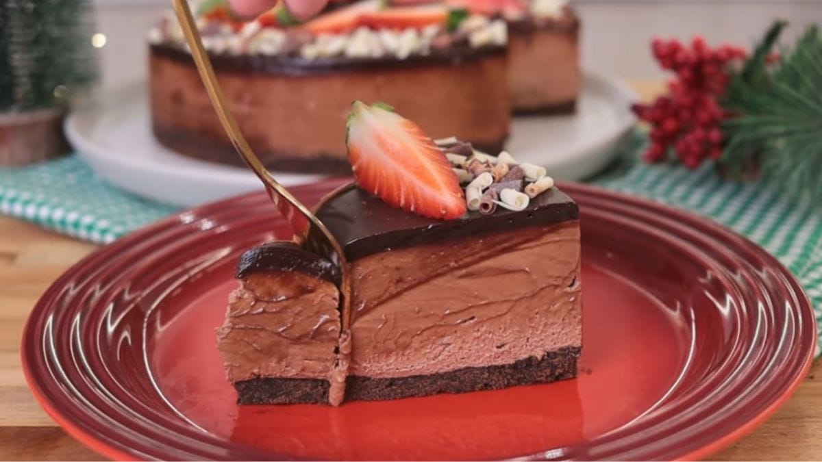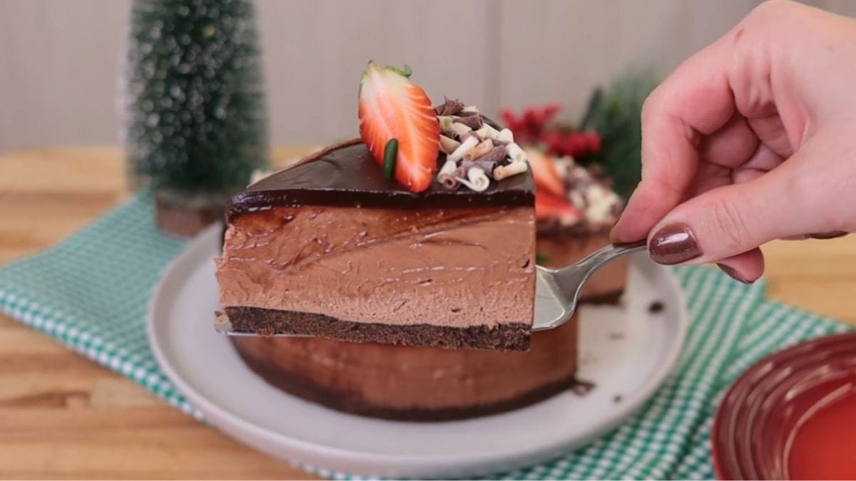 Essa receita é a opção perfeita de sobremesa para a ceia especial de Natal. Super cremoso e fácil, esse cheesecake de chocolate é delicioso. Confira o passo a passo a seguir.